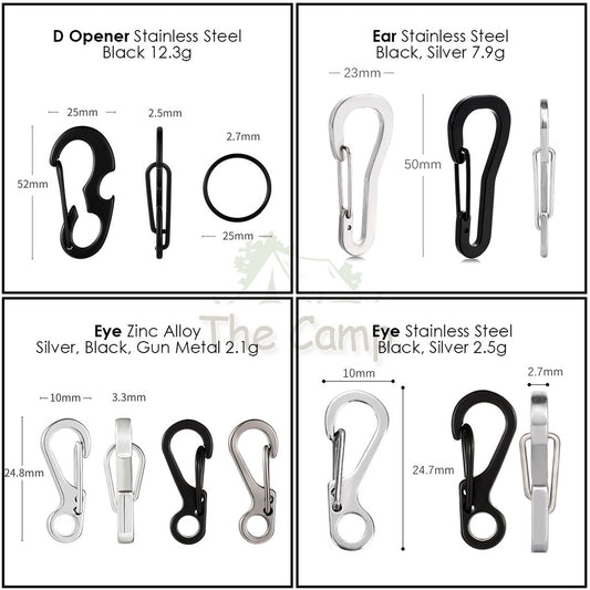 Carabiner D Shape S Shape Aluminium Stainless Steel Buckle Clip Key Chain Outdoor Camping Paracord Spring Keyring Hook