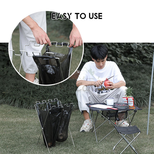Foldable Garbage Frame Rack Bin Disposable Portable Rubbish Bag Outdoor Camping Trash Holder Stand Wood Steel Storage