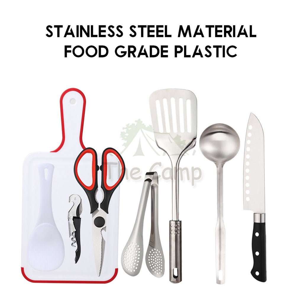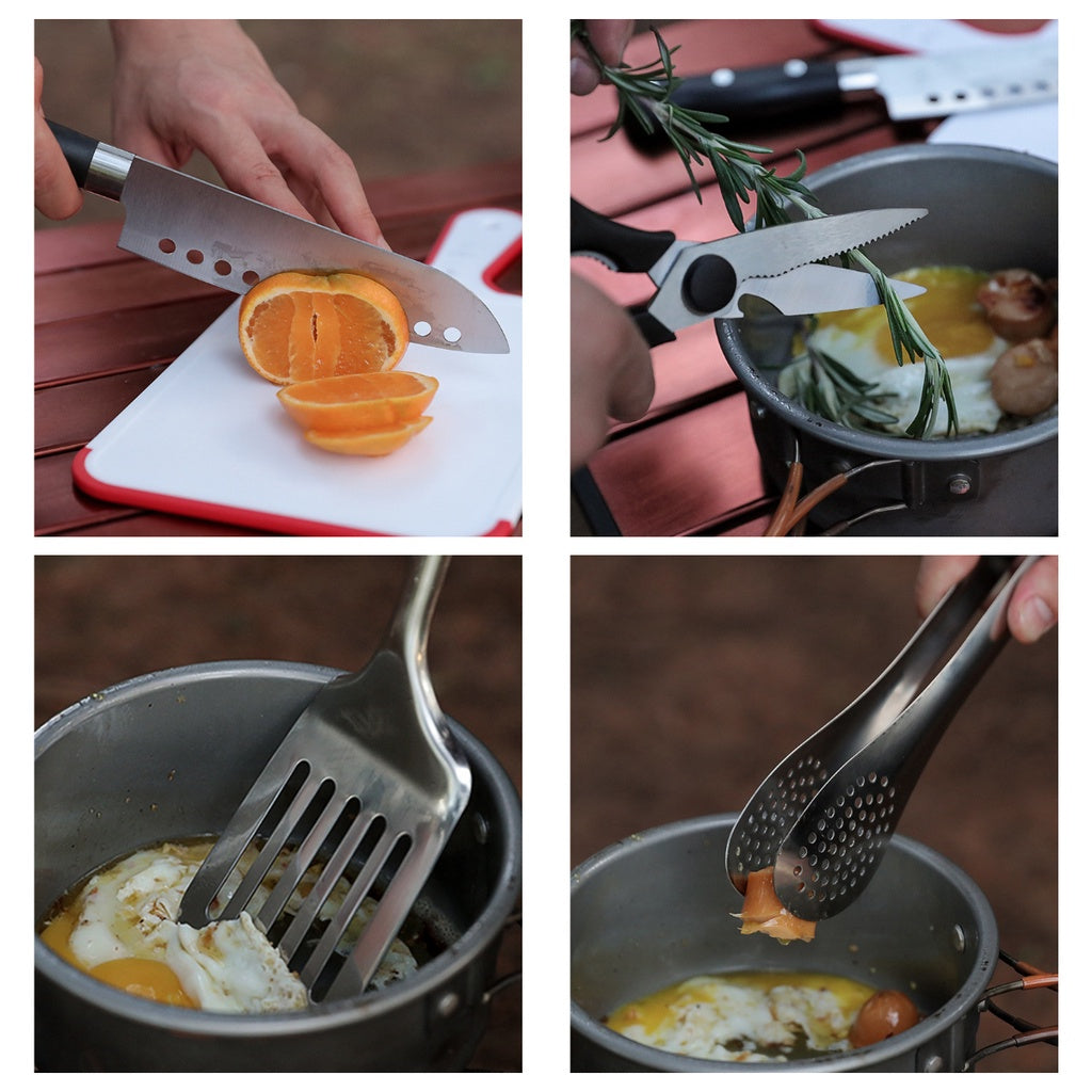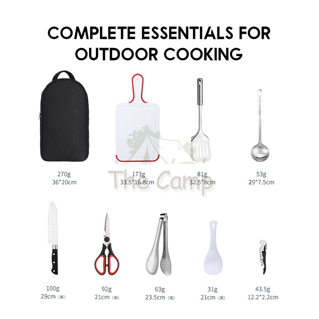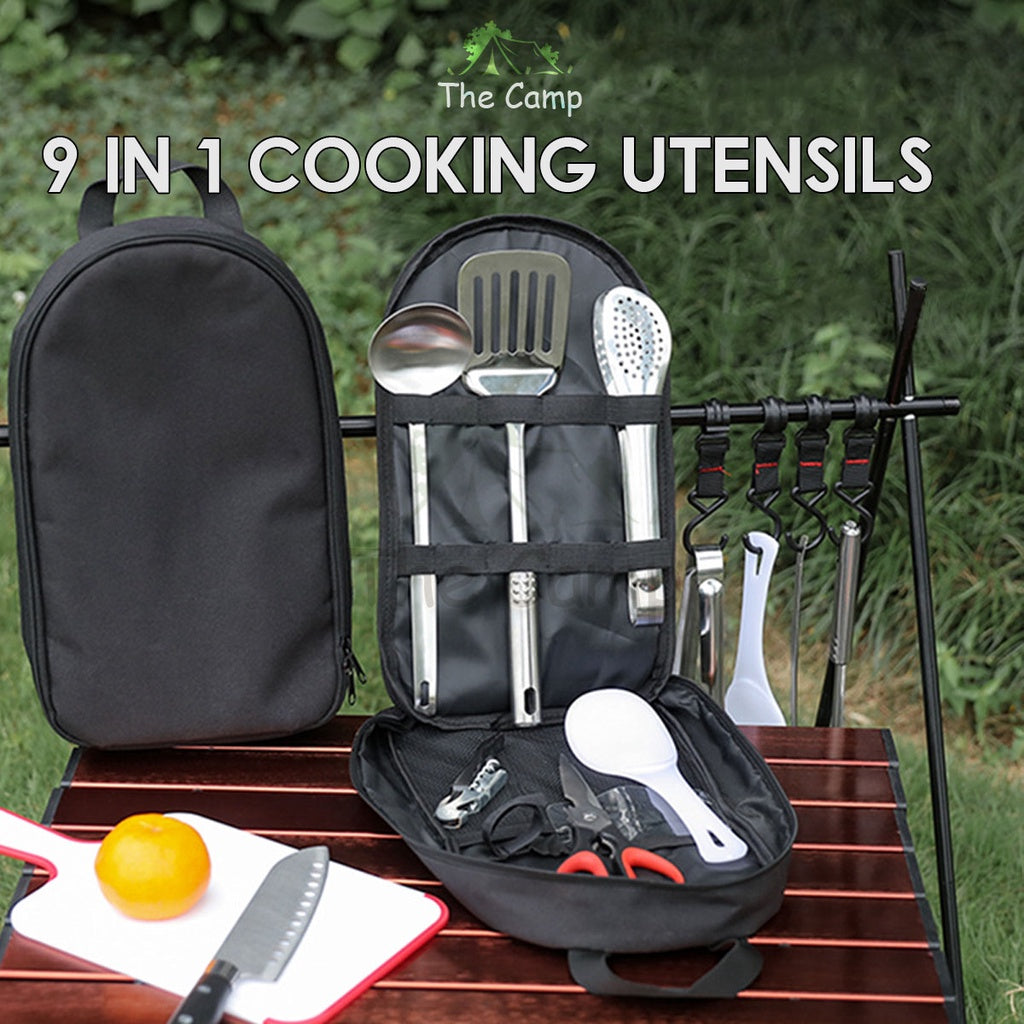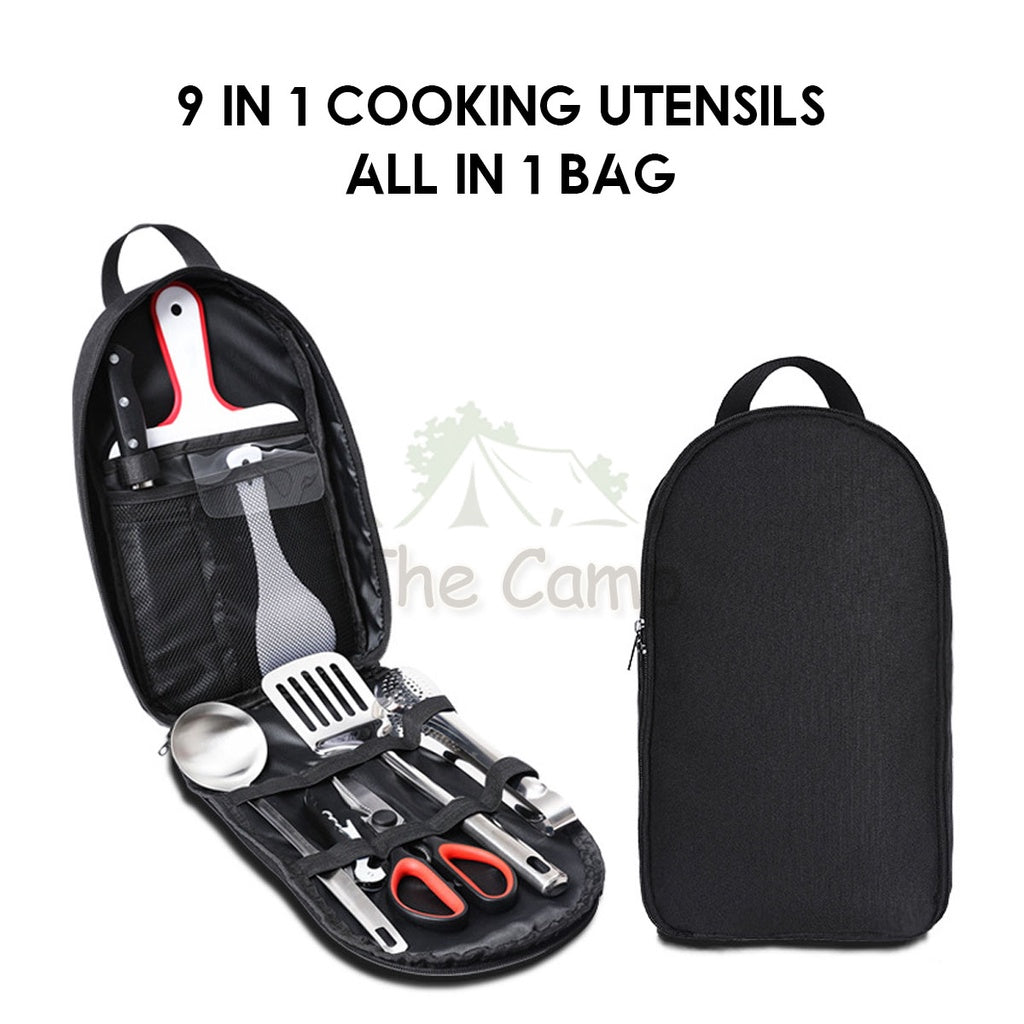 9 in 1 Cooking Utensil Kit Camping Picnic Cookware Hiking Knife Spoon Fork Stove Cooking Spatula Utensils