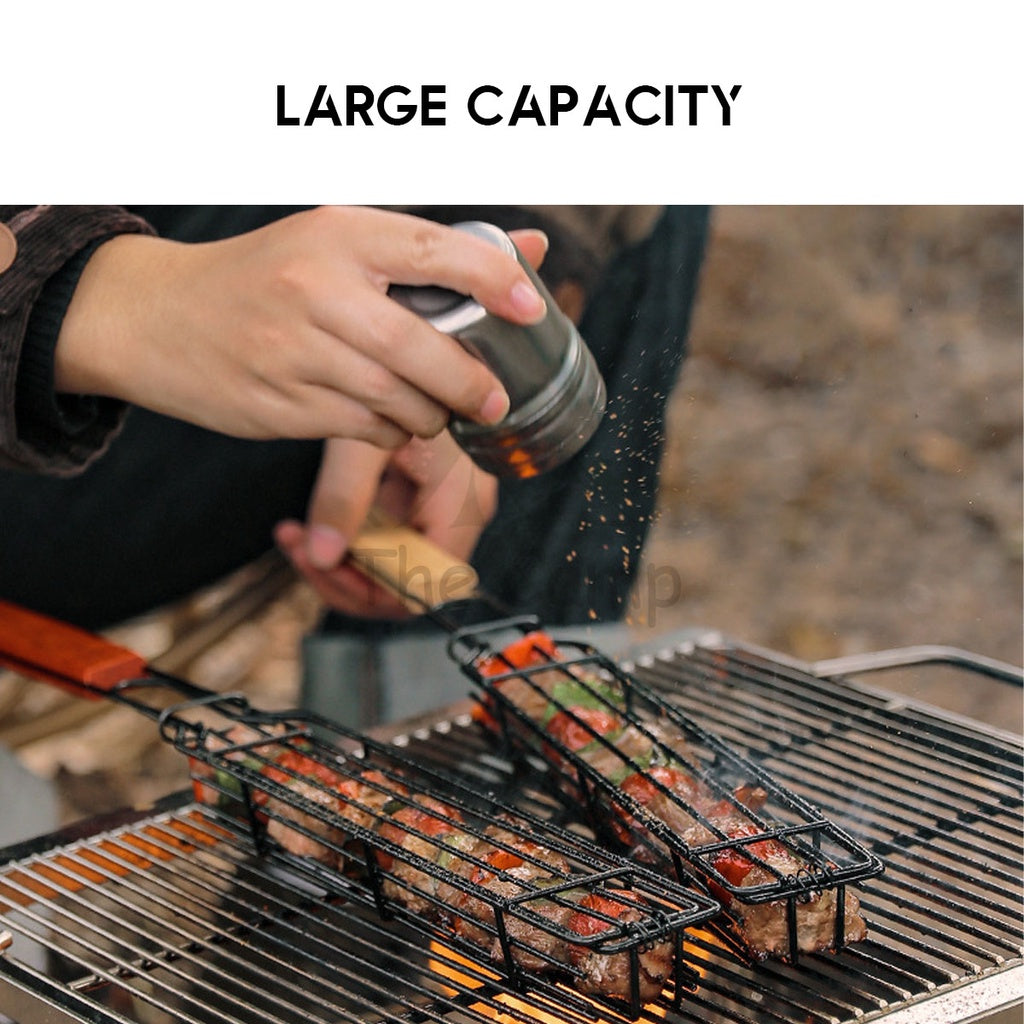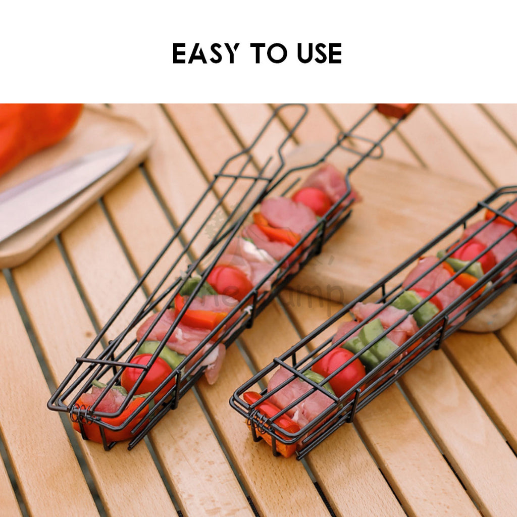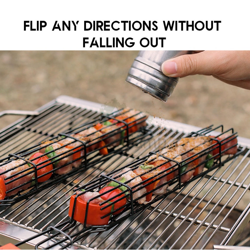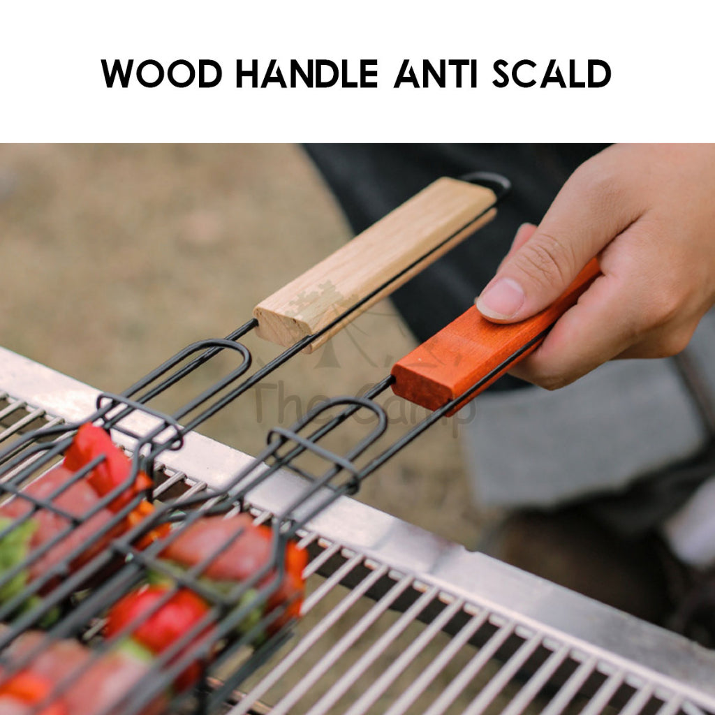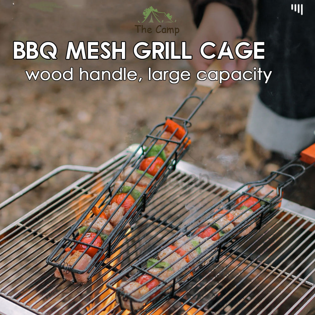 BBQ Mesh Grill Cage Rack Net Clip Roaster Skewer Stick Rotate Cage Basket Stove Barbecue Chicken Wing Anti Falling