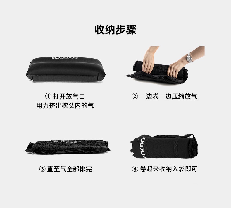 Blackdog Auto Inflation Sponge Memory Foam Pillow with Case Black for Bed Mattress Inflatable CBD2450WS045 BD-CQZ001