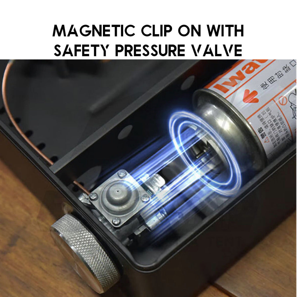 Buerk Cassette Gas Stove High Power 5.2KW Portable Cartridge Burner Furnace Outdoor Camping Picnic Windshield Black