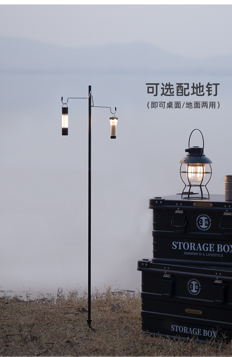 Camping Lamp Pole 1.2m / 1.5m Single / Double Light Hanger Rod Adjustable Lantern Stand Outdoor Spider Tray Top Panel