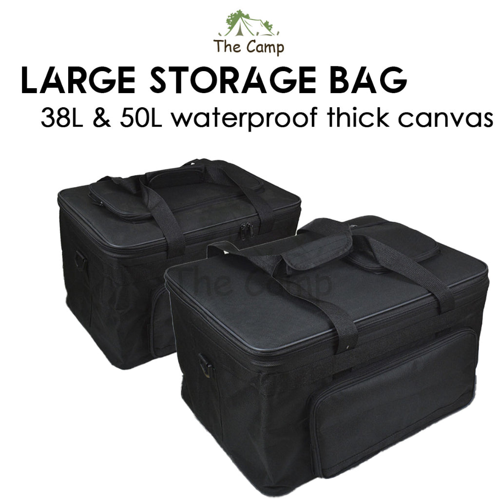 Camping Waterproof Storage Bag 50L 38L Big and Medium Size Black Outdoor Thick Canvas Beg Tool Cookware Equipments