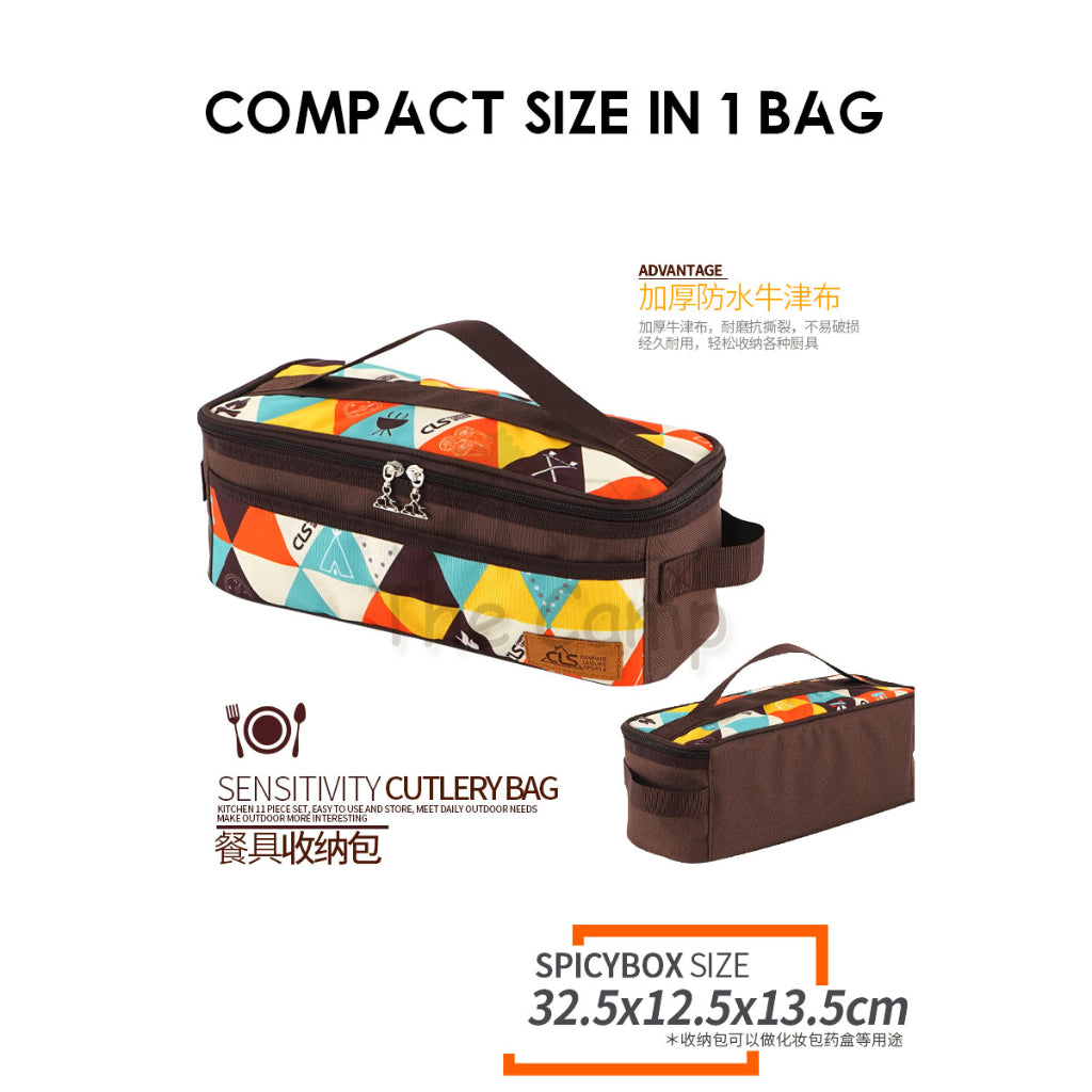 CLS 11PCS Kitchenware Cooking Set for Outdoor Camping Condiment Kitchen Tool Cookware Egg Case Knife Chopping Board