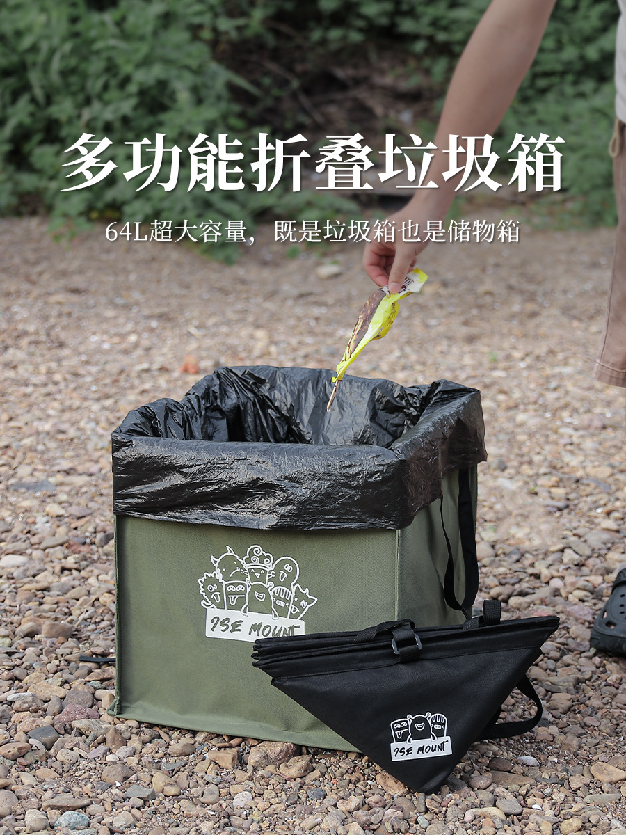 Foldable Standing Bag 64L Large Outdoor Camping Rubbish Garbage Rack Laundry Bags Black Folding Compact Size Garbage