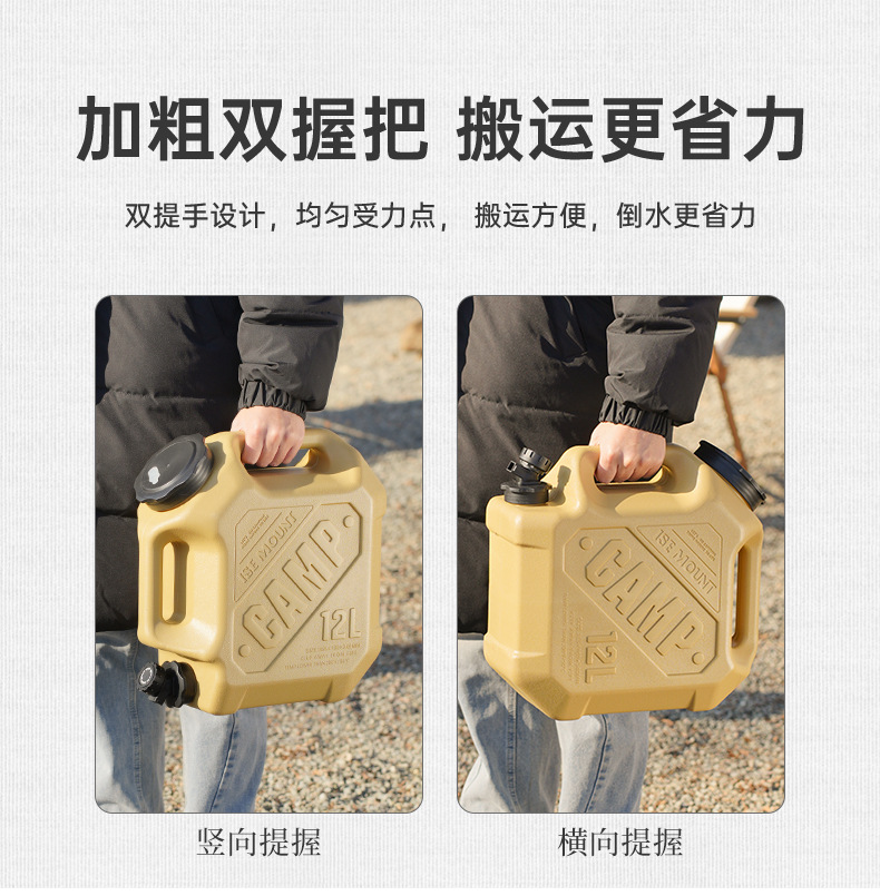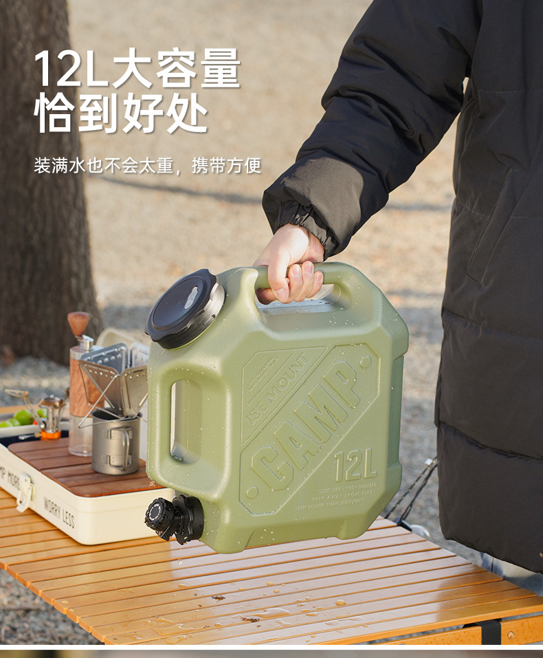 Ise Mount 12L Water Tank Bucket Double Handle Portable Container Water Tap Outdoor Camping PP Food Grade