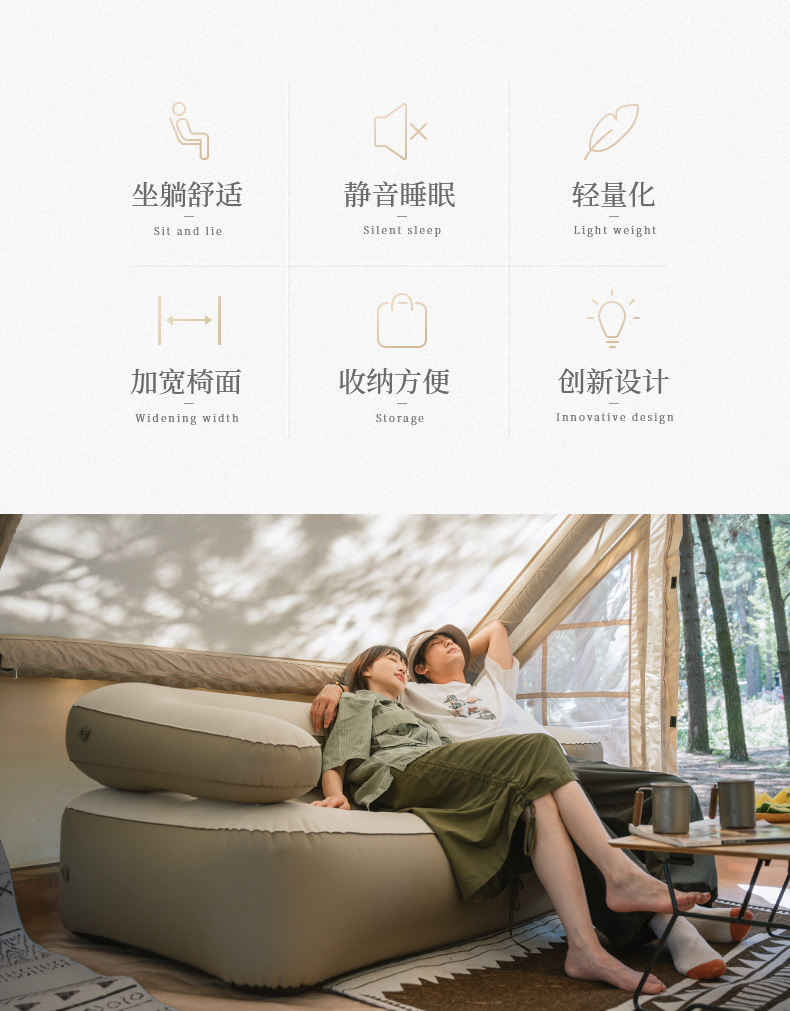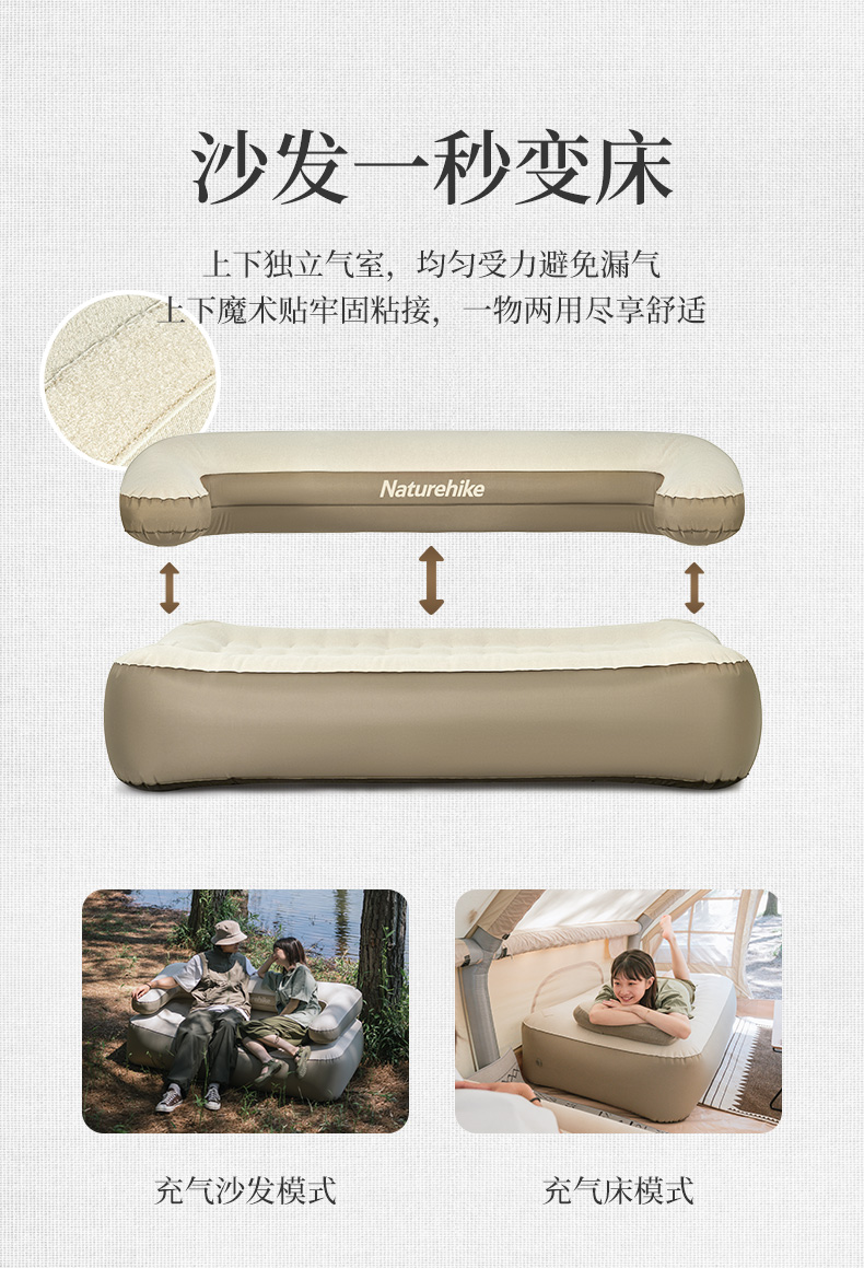 Naturehike 2 In 1 Inflatable Sofa & Bed TPU Outdoor Camping Portable 35CM Thickened Double Single Bed Mattress NH22FCD06