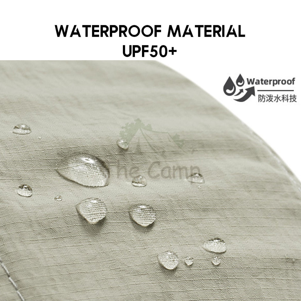 Feature: UPF50+ / UV99% UV Protection / Detachable Buttons / Safety Warning Reflective Strip (Outdoor Safety Travel) / Breathable Mesh Holes / Waterproof Anti-splash Technology / Wide and Flat Brim / Sweatband Inside