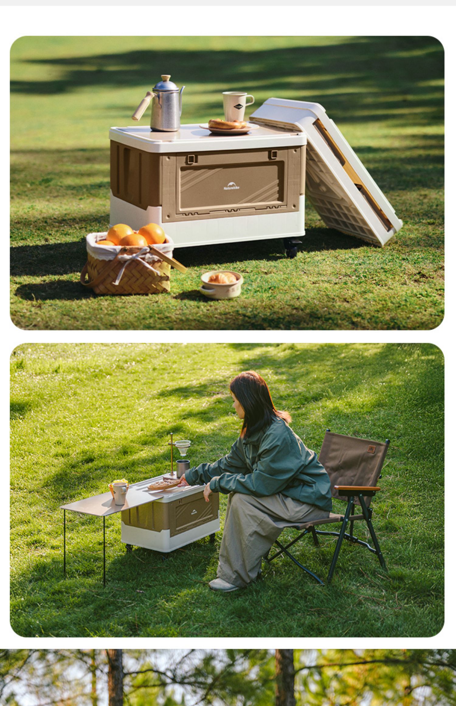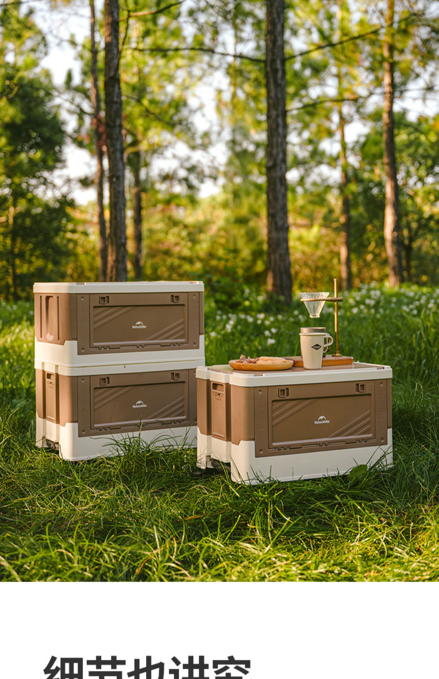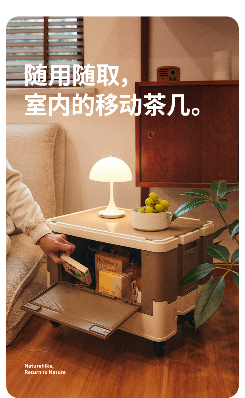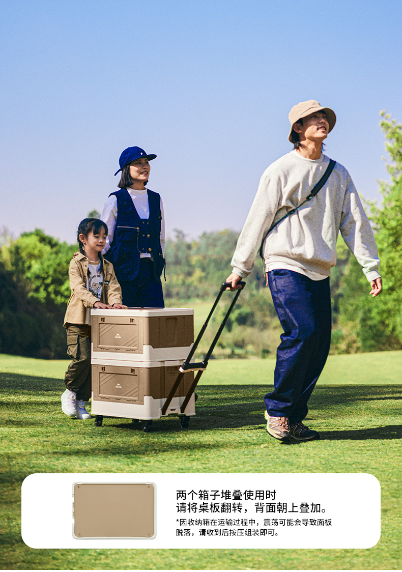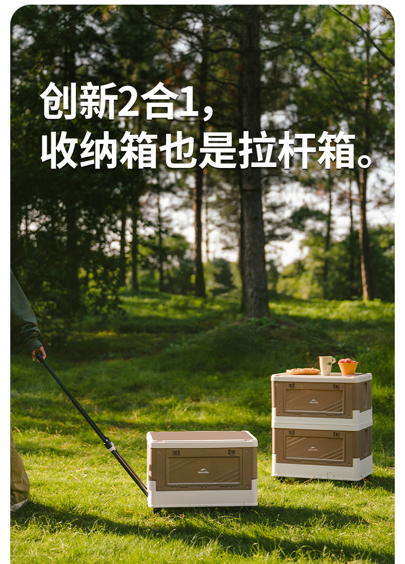 Naturehike 42L Storage Box with Telescopic Pull Handle Table Top Wheel Stackable Outdoor Camping Khaki CNK2450XB012