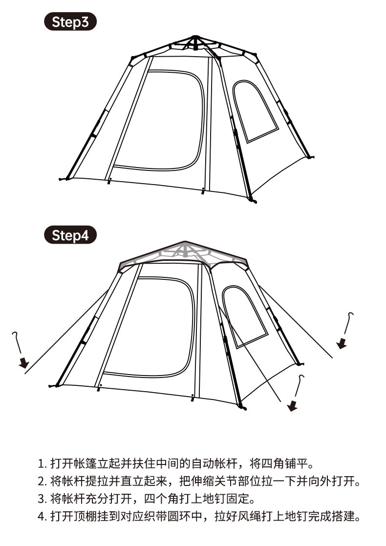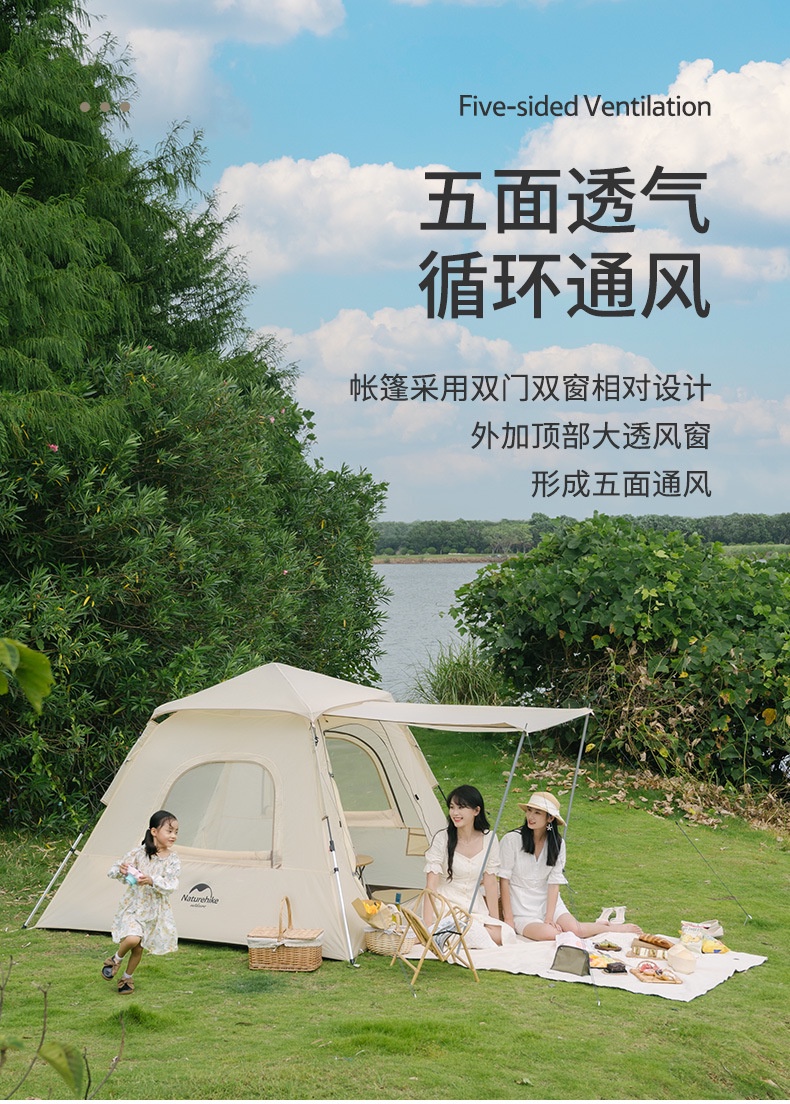Naturehike Ango 3 Automatic Camping Tent UPF50 Black Large Capacity Outdoor Chair Flysheet Table Tarp Peg Nail Pole