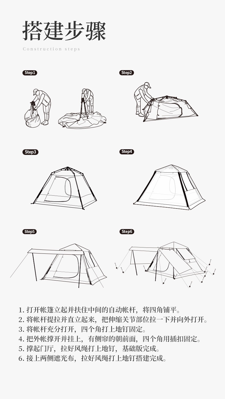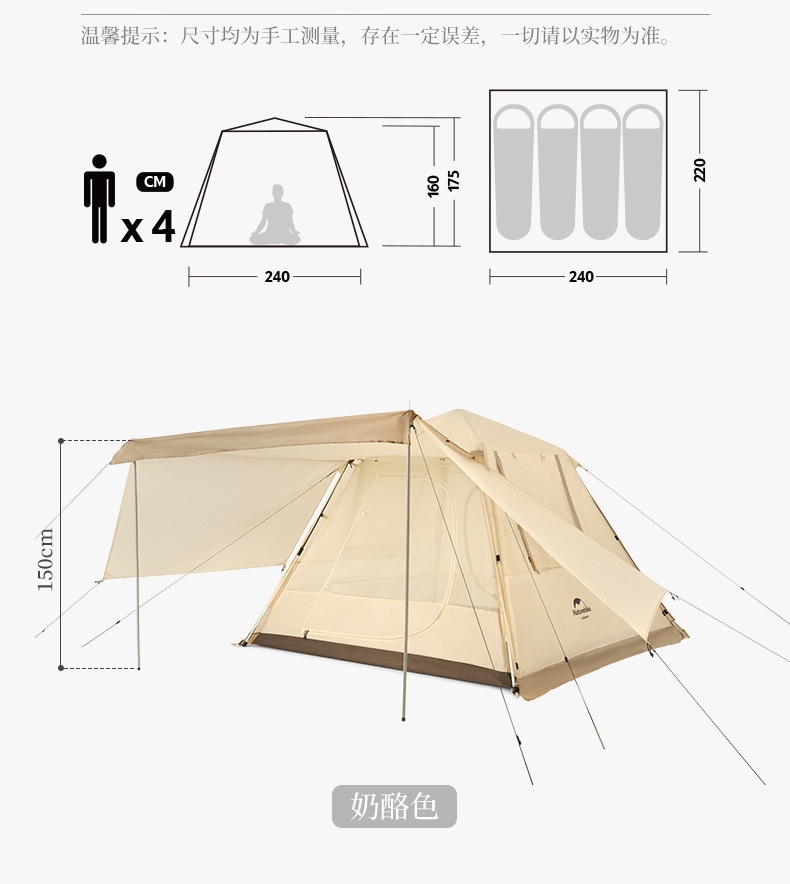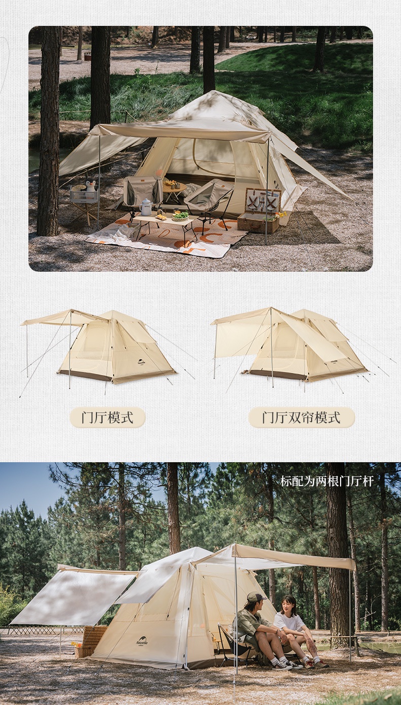 Naturehike Ango 4 Automatic Camping Tent UPF50 Version Large Capacity Outdoor Chair Flysheet Table Tarp Peg Nail Pole
