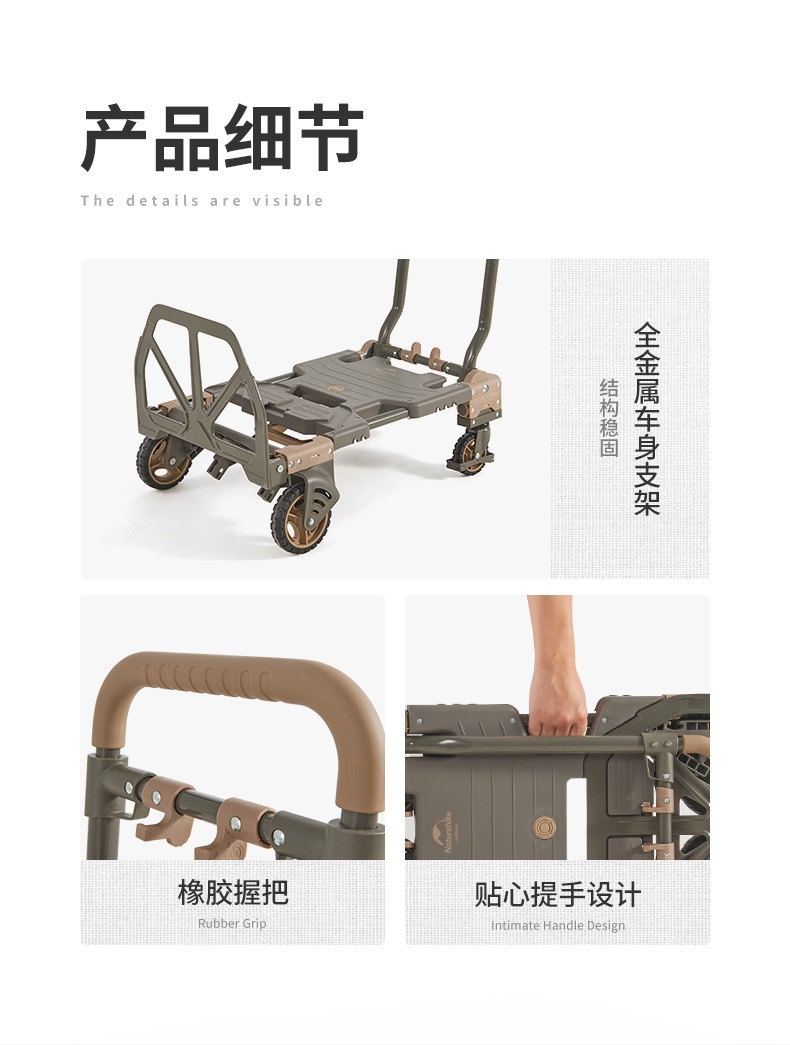 Naturehike Camping Trolley 2 in 1 Portable Wagon TC08 Fast Easy Travel Luggage Shopping Cart Outdoor CNH22JU024