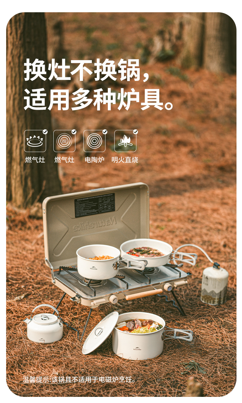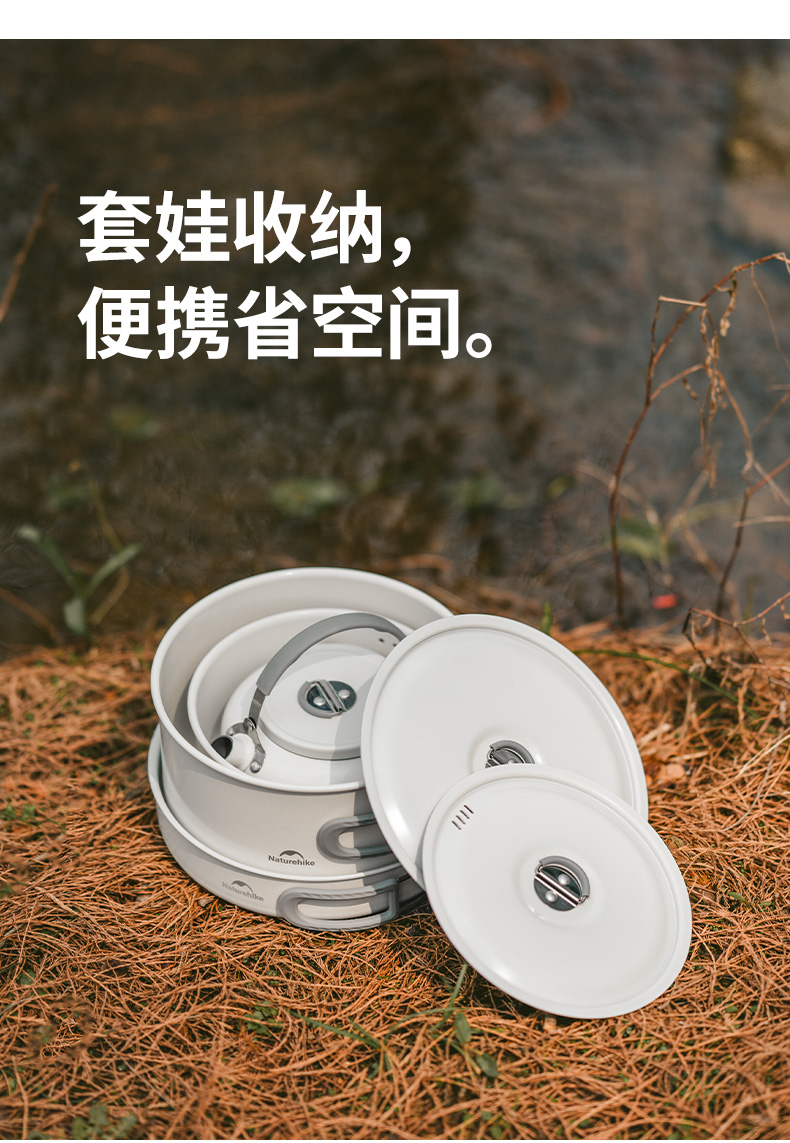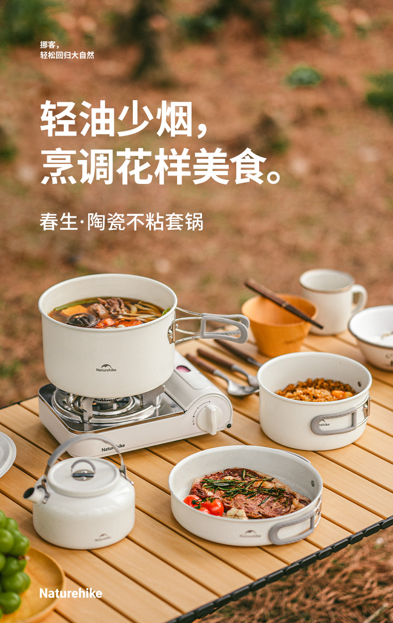 Naturehike Ceramic Cookware Set Non Stick Coating Cooking Set Pot Set Kettle Pan Pot Camping Outdoor Picnic CNK2450CF013