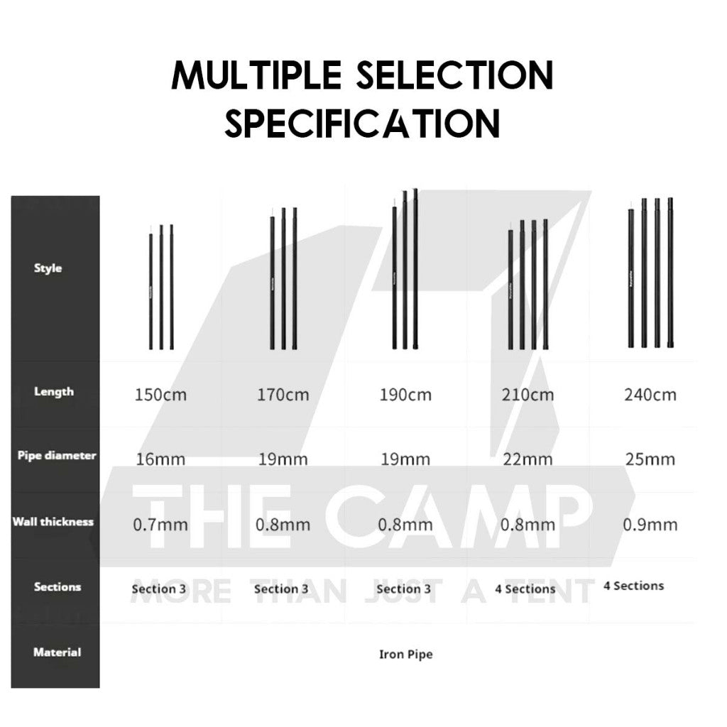 Naturehike Flysheet Pole 2pcs Set Camping Outdoors Tarp Door Tent Poles 1.7m 1.9m 2.1m 2.4m Awning Tiang CNK2550PJ010
