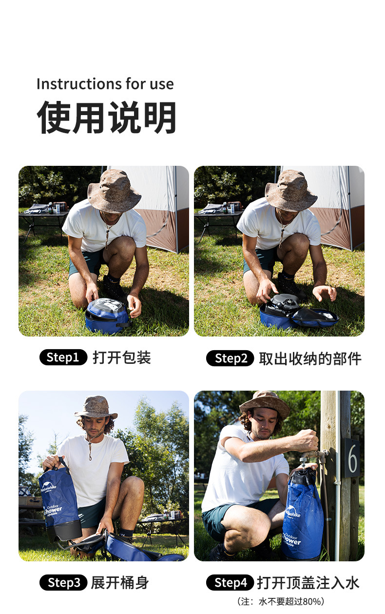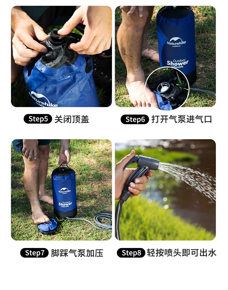 Naturehike Shower Water Bag 11L Pressurize Water Outdoor Camping Portable Foot Press Pressurize Travel Wash Washing