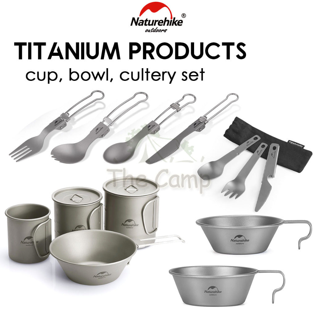 Naturehike Titanium Series Product Cup Bowl Cutlery Set Spork Fork Spoon Knife Cookware Utensil Camping Mobi Garden
