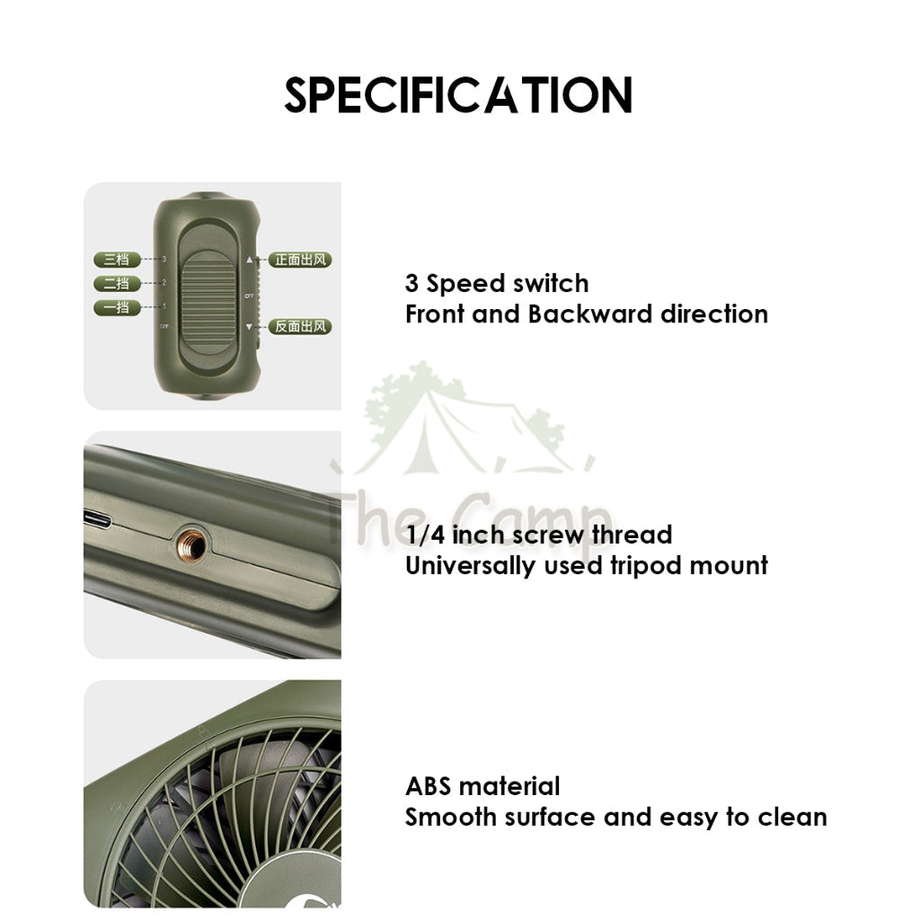 Naturehike USB Fan Camping Outdoor Rechargable Two Way Direction Forward Backward Variable Speed 3 Speed