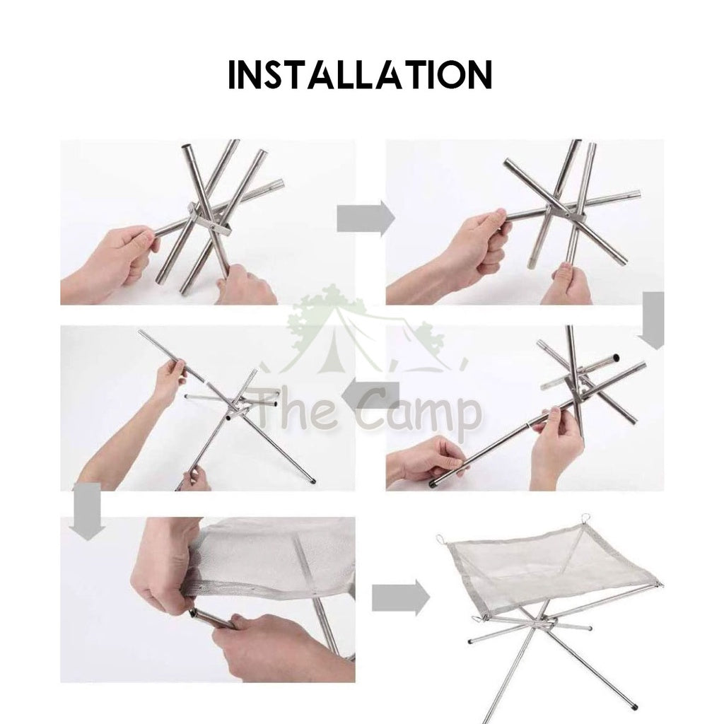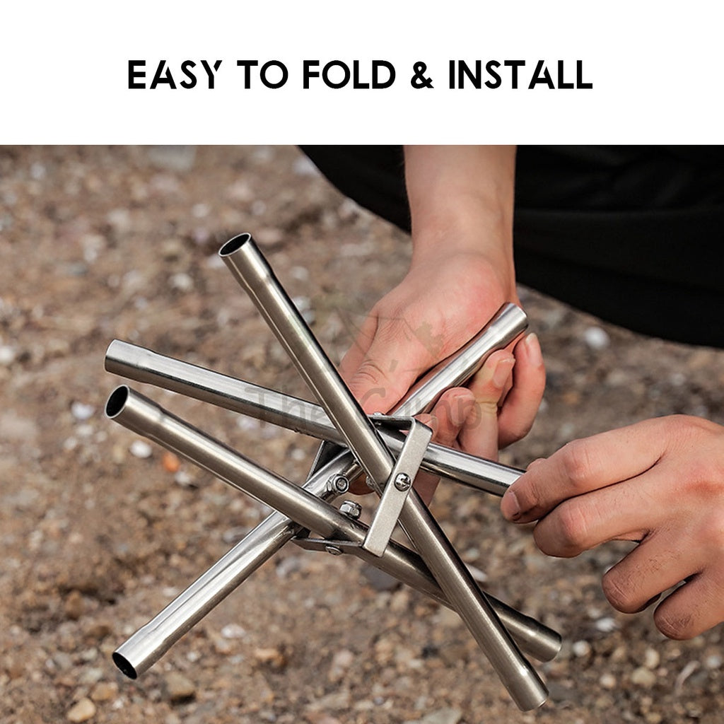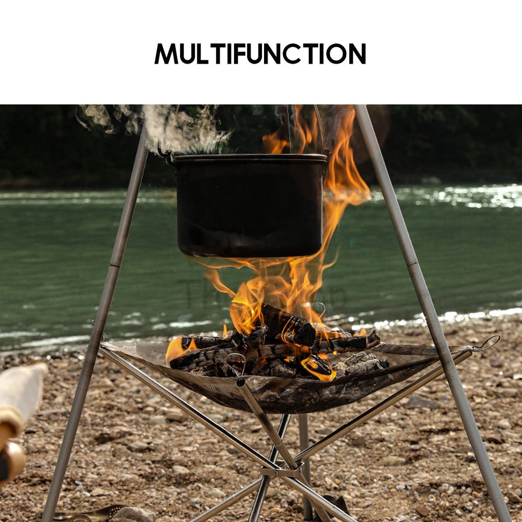 Outdoor Camping 304 Stainless Steel Mesh Fire Pit Portable Foldable Rack BBQ Tripod Triangle Bonfire Campfire Fireplace
