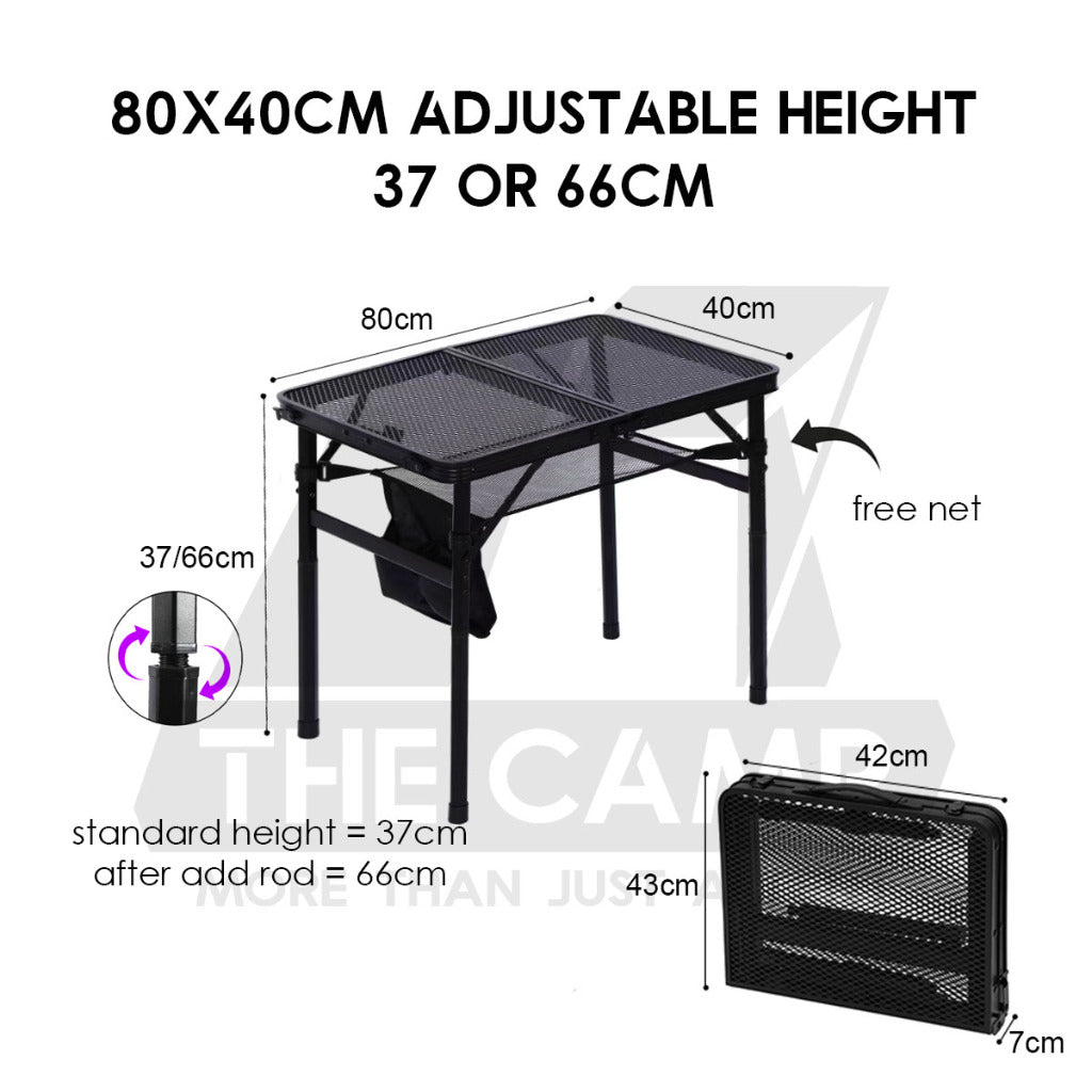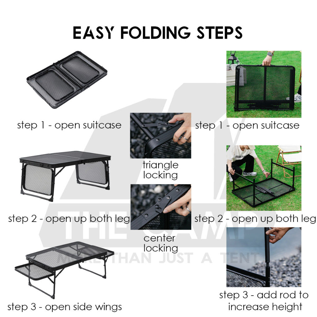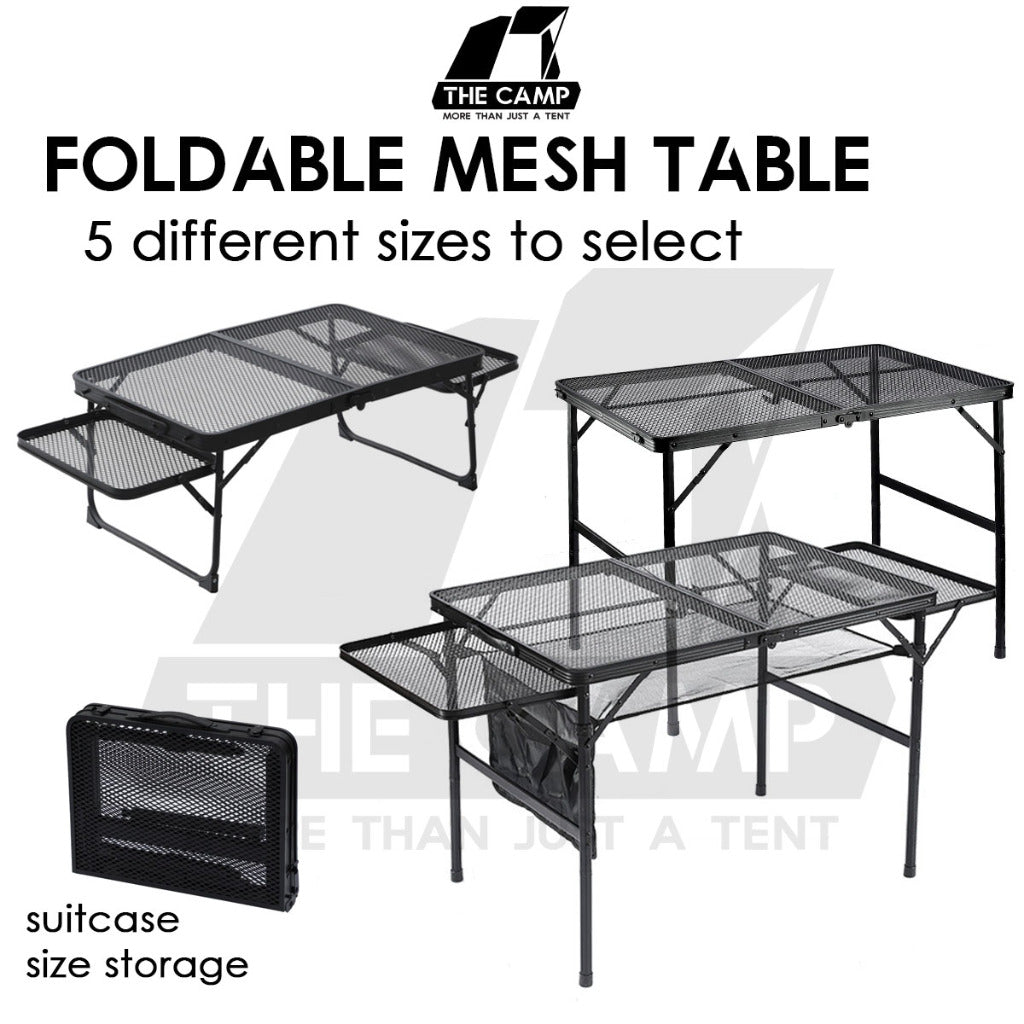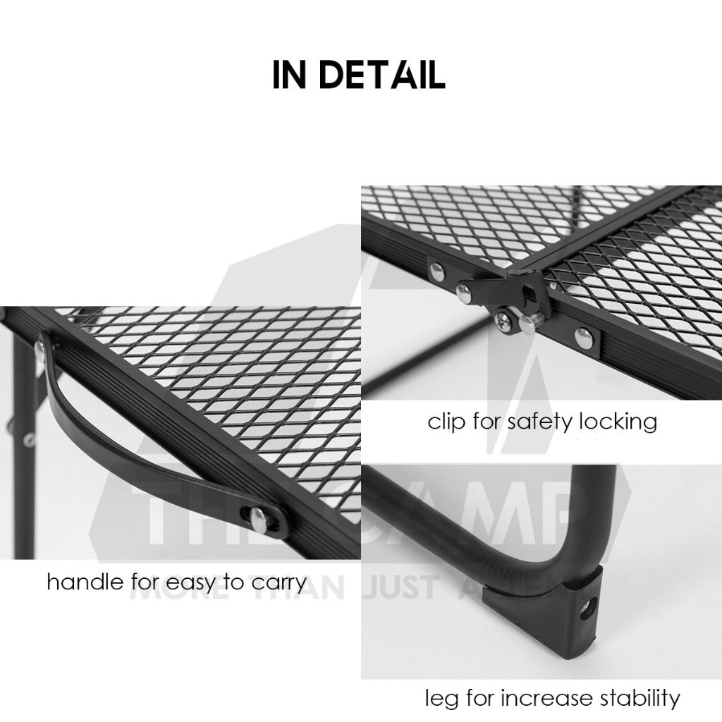 Outdoor Camping Aluminium Mesh Table Foldable Suitcase Size Portable Lightweight Black Iron Mesh Rack