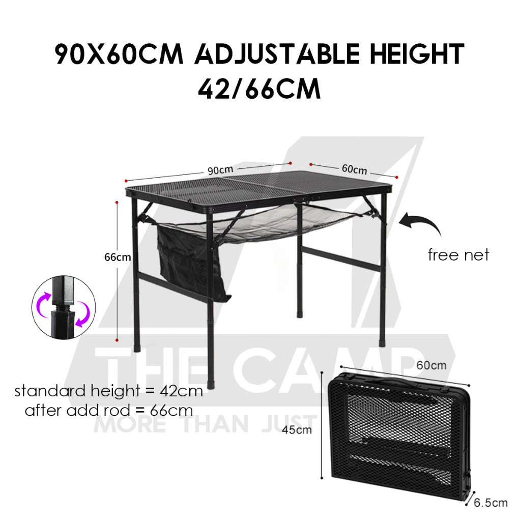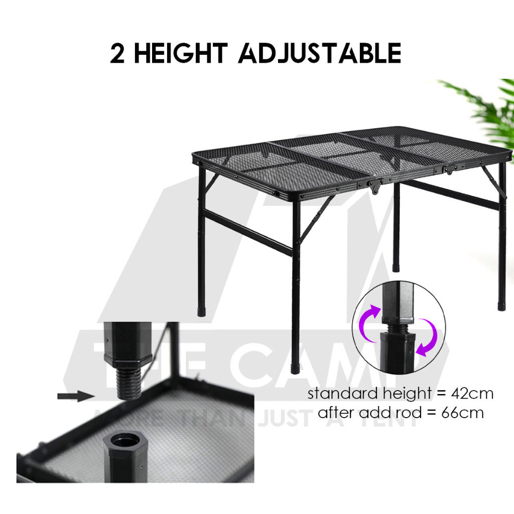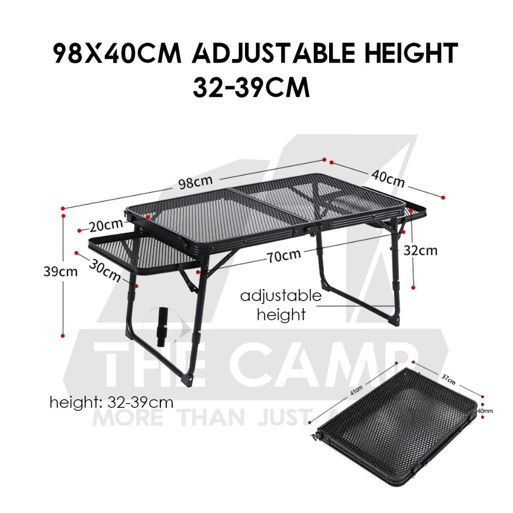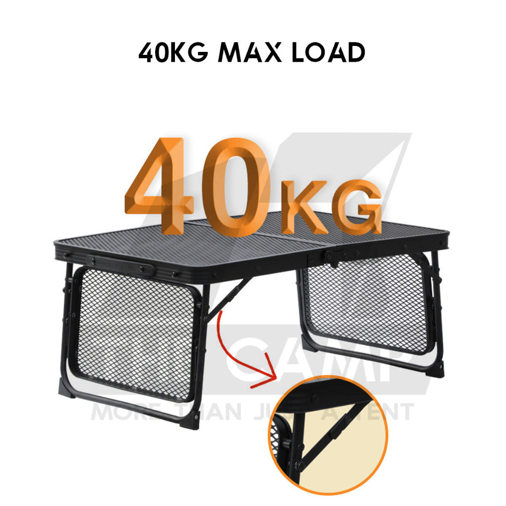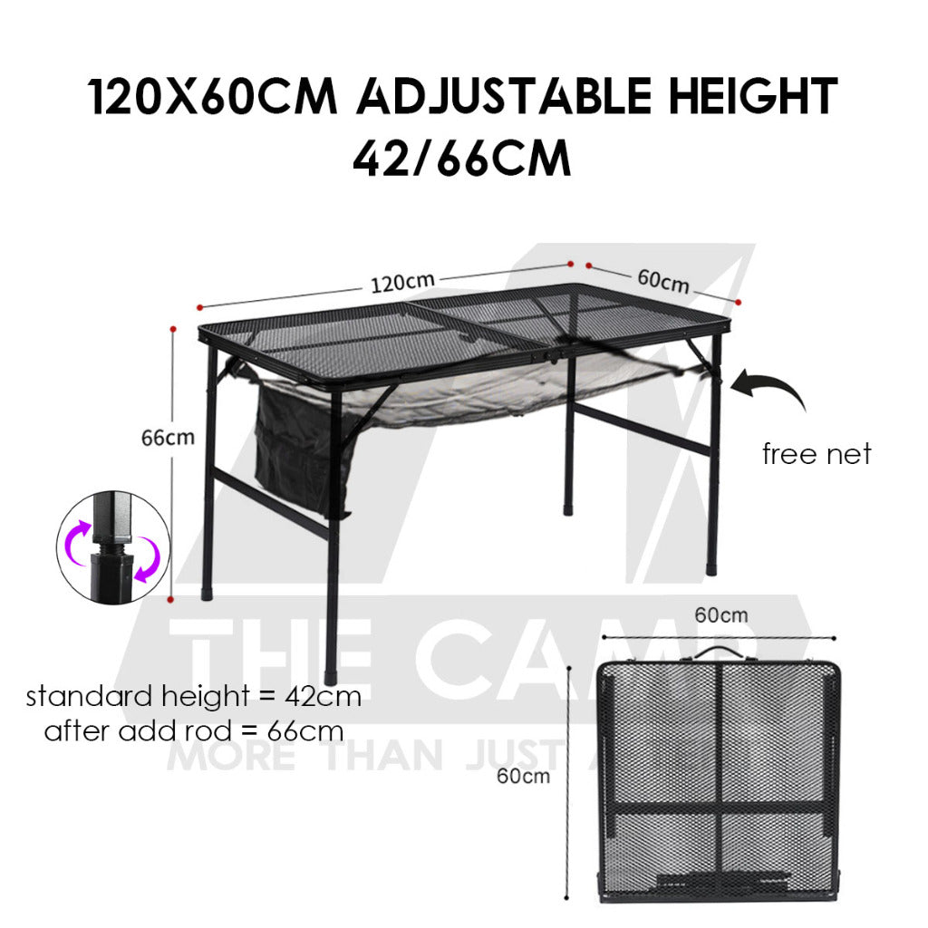 Outdoor Camping Aluminium Mesh Table Foldable Suitcase Size Portable Lightweight Black Iron Mesh Rack