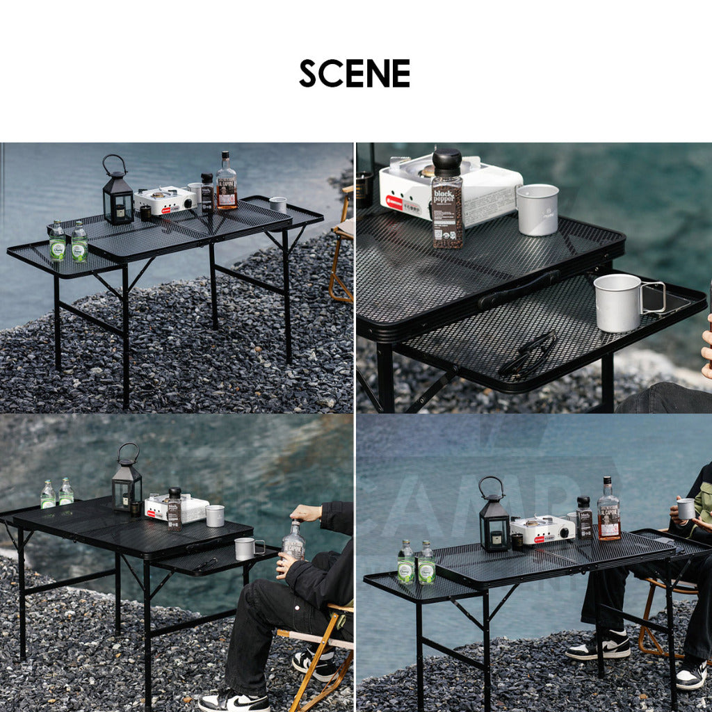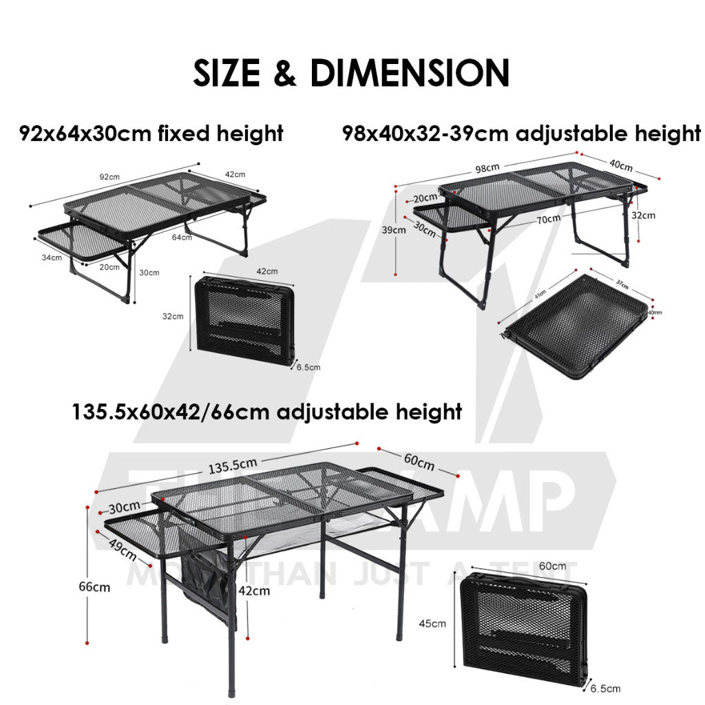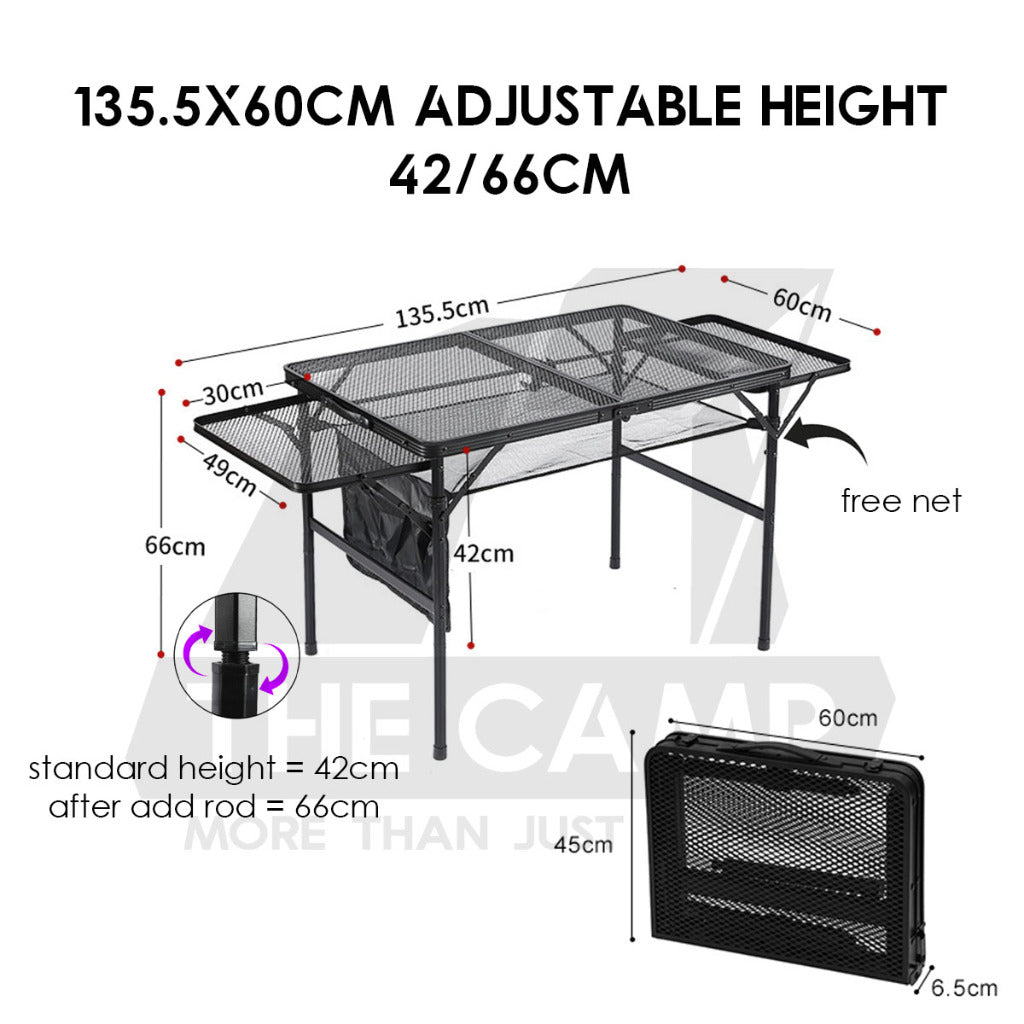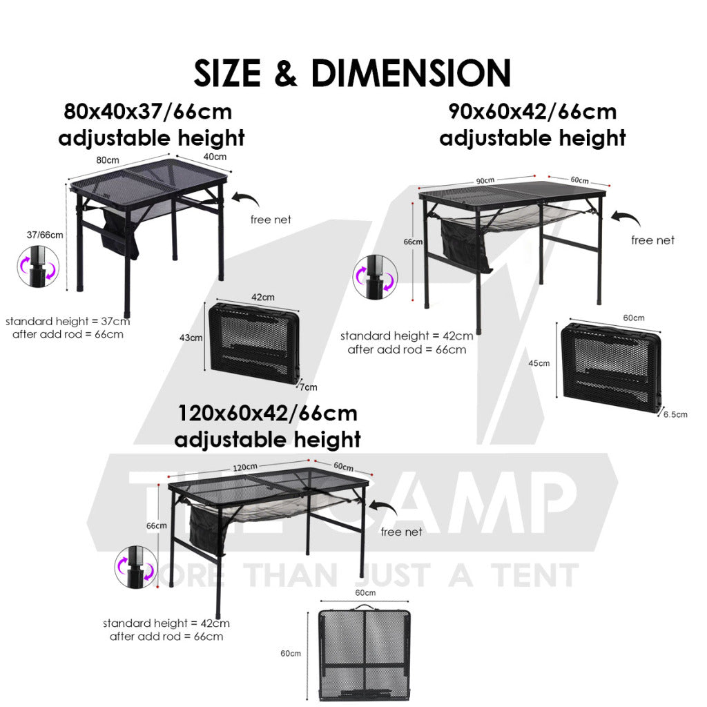 Outdoor Camping Aluminium Mesh Table Foldable Suitcase Size Portable Lightweight Black Iron Mesh Rack
