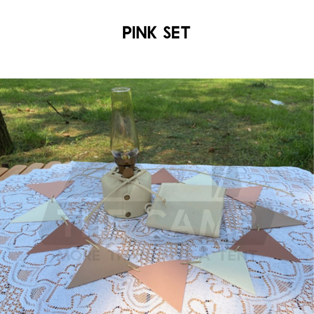 Outdoor Camping Flag PU Leather Decoration Tent Khemah Deco Triangle Equipment Flags Nail Rope Bag Pole Hanging Strap Pi