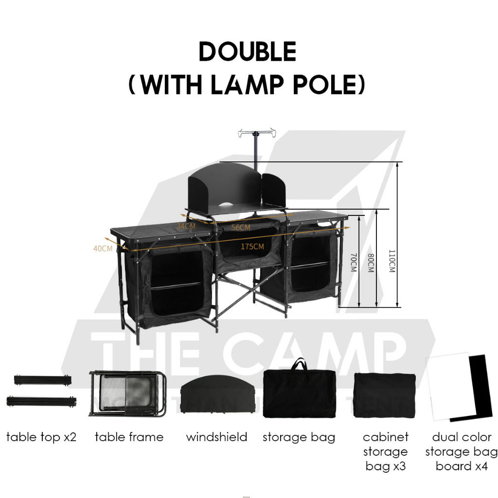 Outdoor Camping Mobile Kitchen Table Portable Folding Kitchen Black Cookware Windshield Mesh Bag Dapur Single/Double