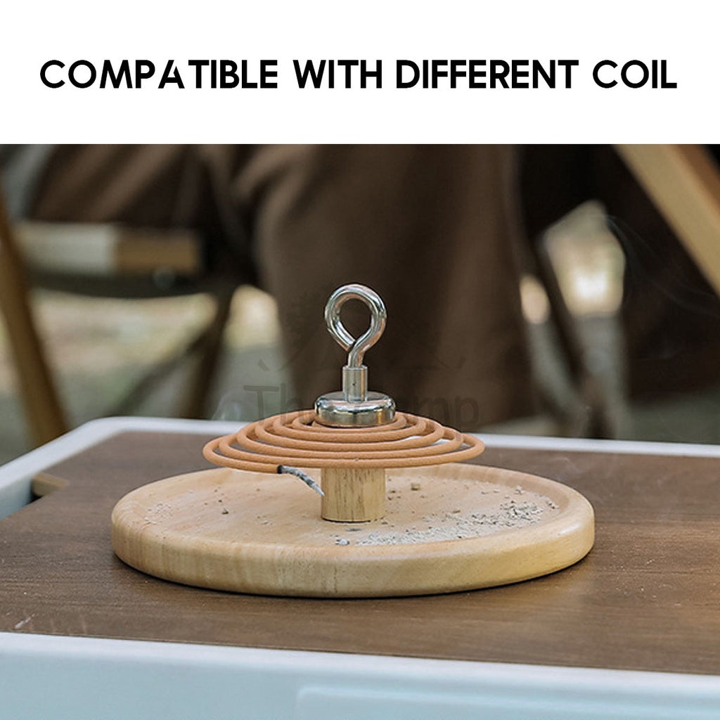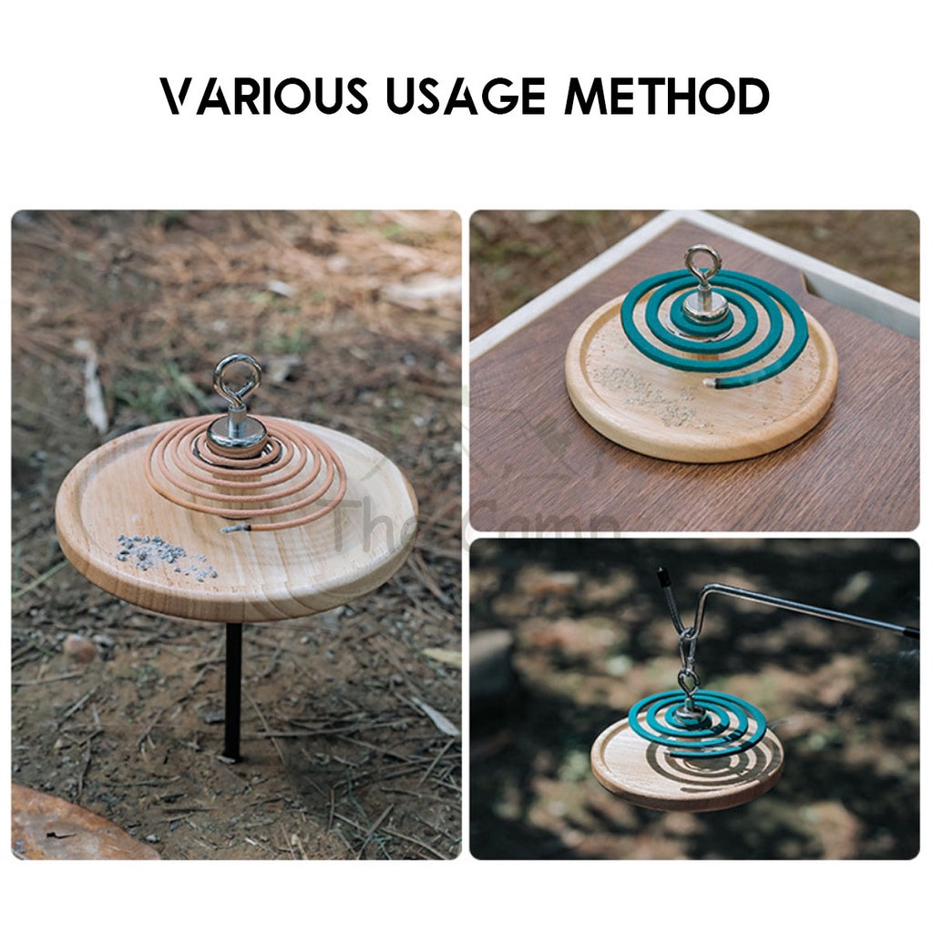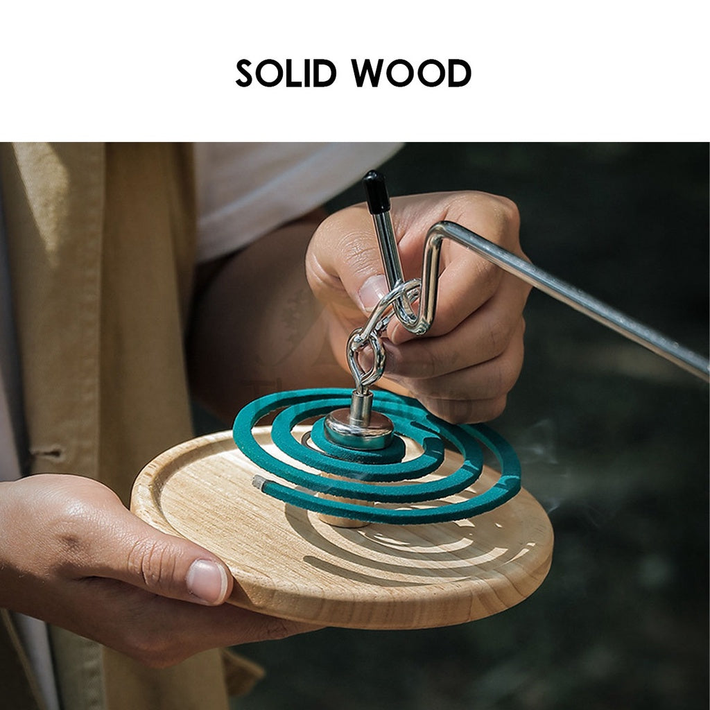 Outdoor Camping Mosquito Coil Rack Holder with Magnetic Box Solid Wood Repellent Incense Tent Flysheet Pole Chair Peg