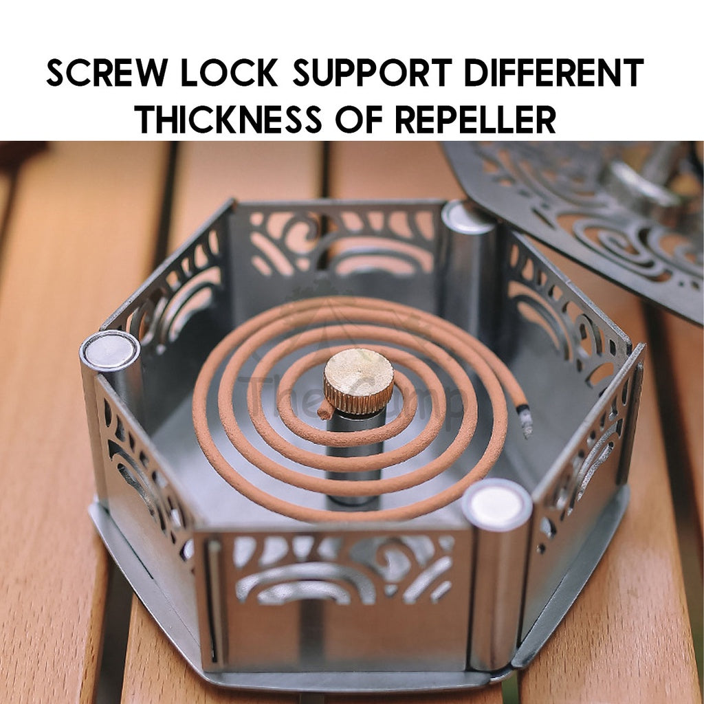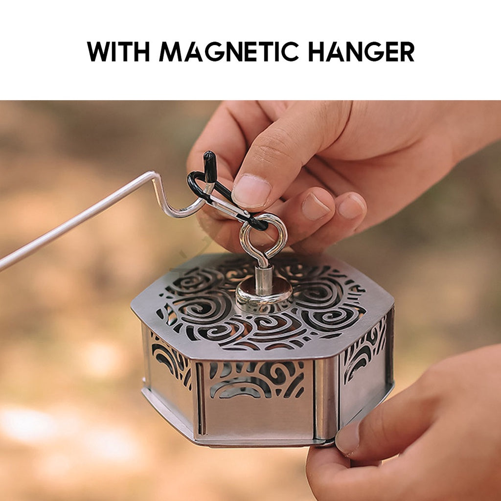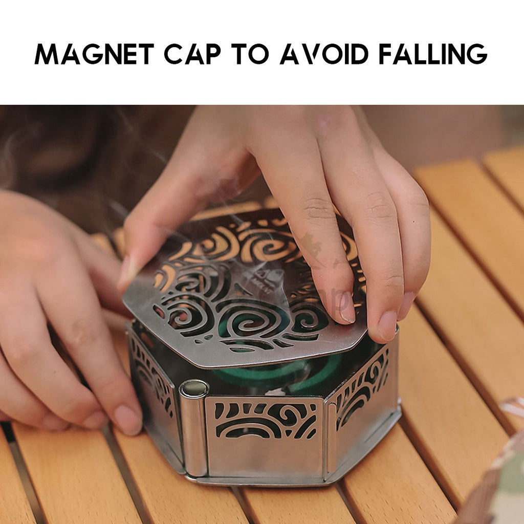 Outdoor Camping Stainless Steel Mosquito Coil Rack Holder with Magnetic Box Solid Wood Repellent Incense Tent Flysheet