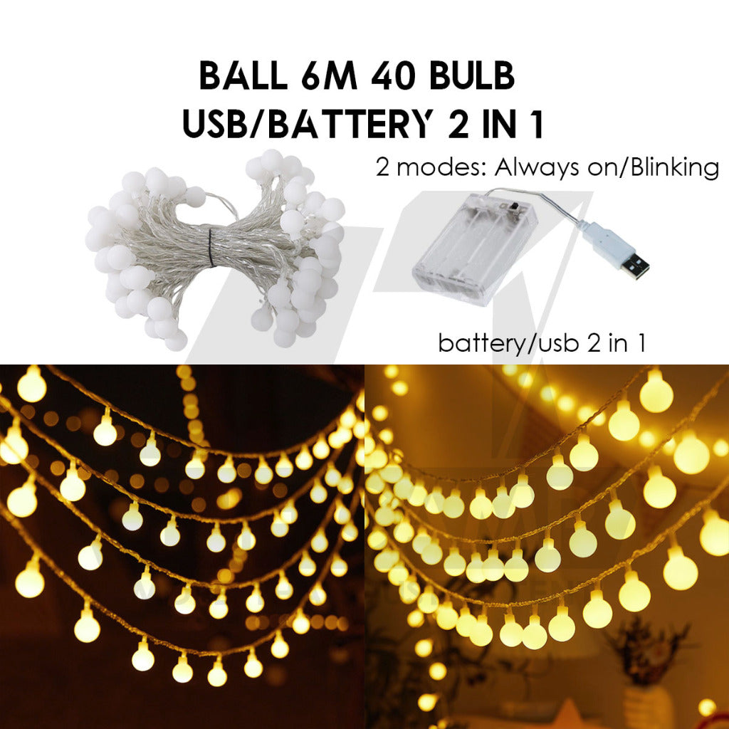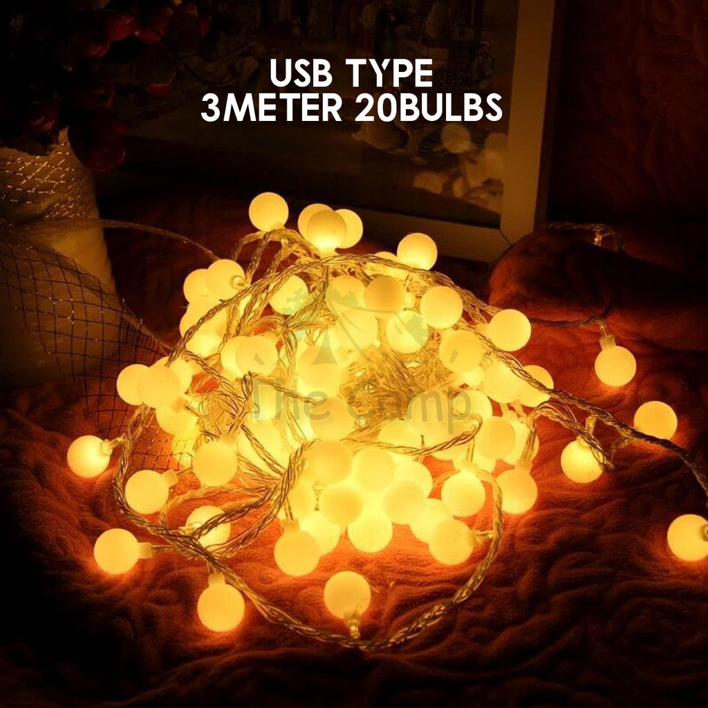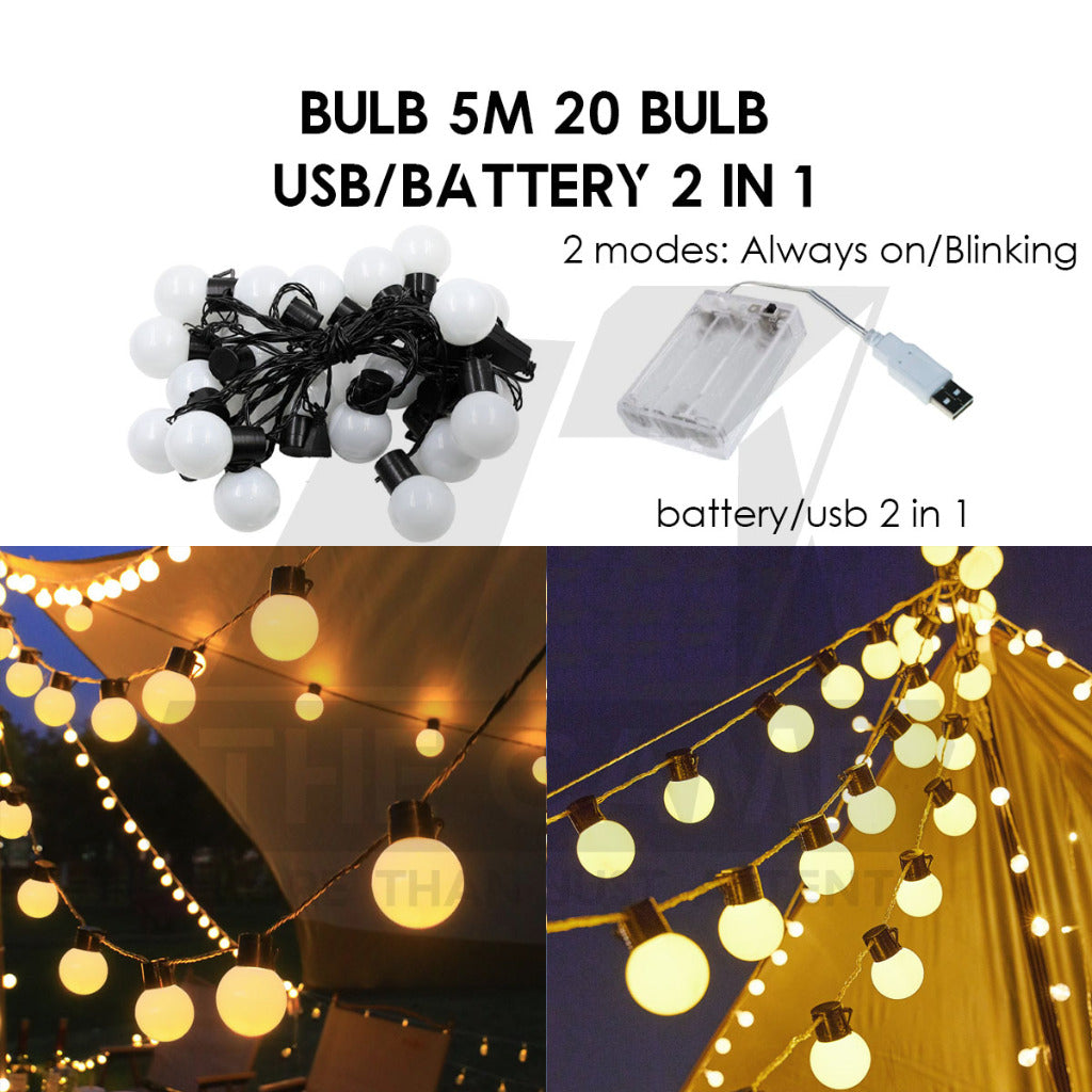 Outdoor LED Fairy Light Bulb Ball String USB Battery 3m 6m 10m Camping Wedding Decoration Xmas Weatherproof