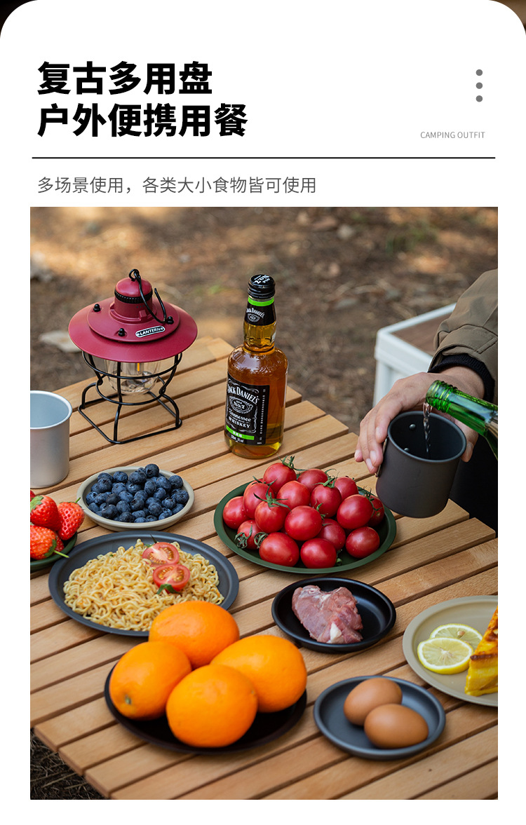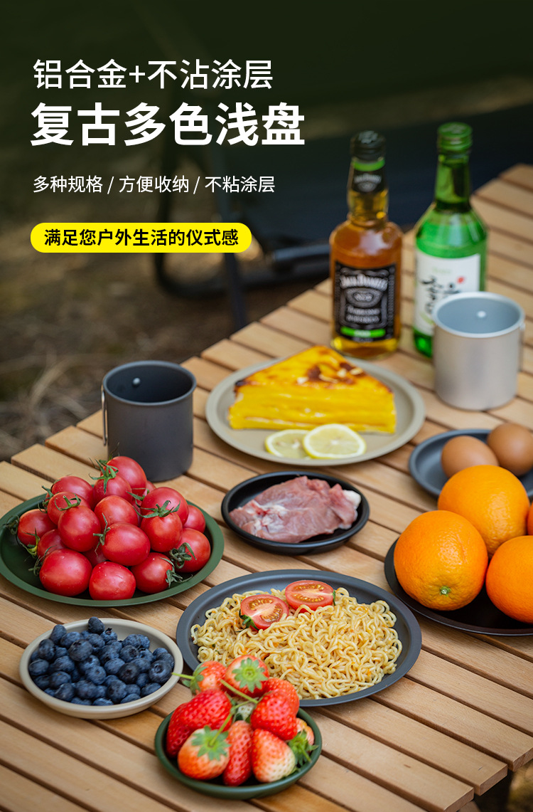 Retro Aluminium Tableware Plate Bowl Cup Mug Outdoor Camping Cookware Black Green Khaki Stove Cookware