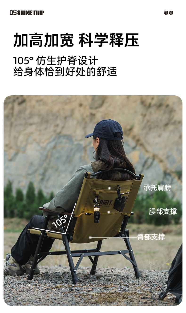 Shinetrip 05 Series Detachable Kermit Chair Tactical Back Support Heavy Duty Outdoor Camping Portable Black Khaki
