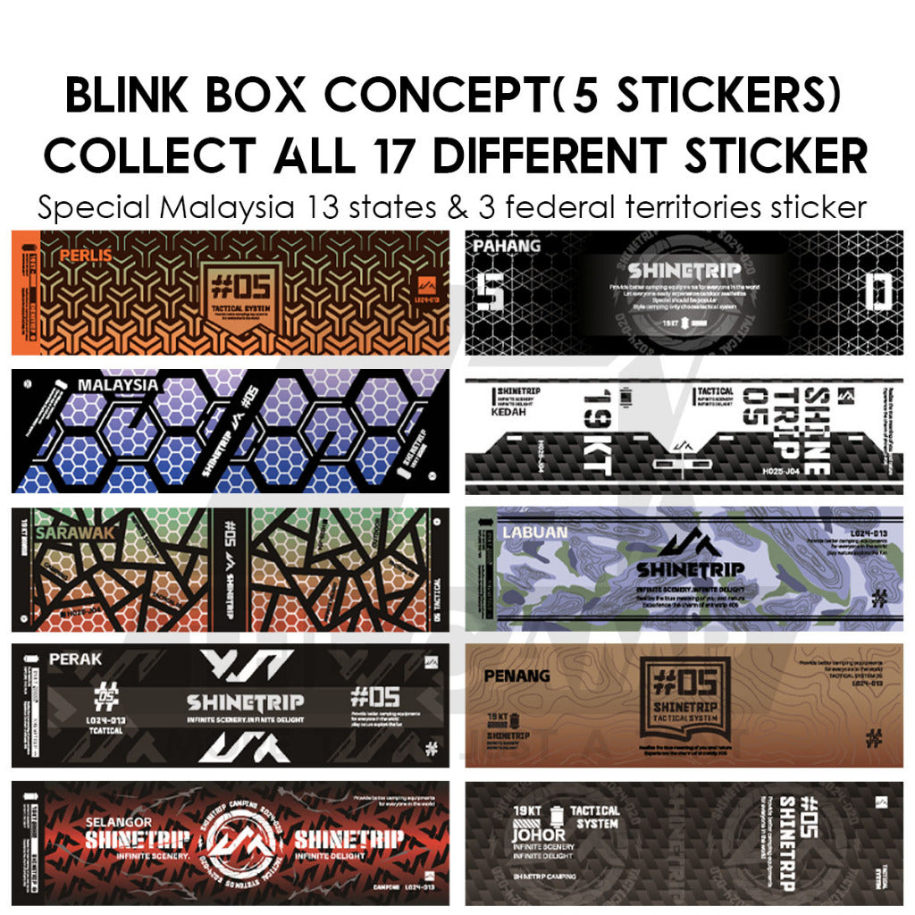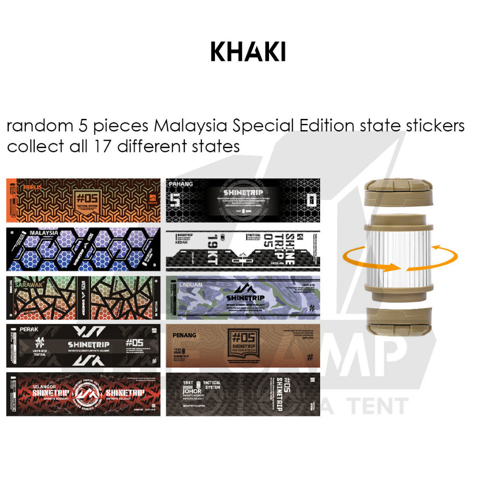 Get ready to light up your adventures with a twist of surprise and patriotism! Introducing the first-ever blind box sticker concept for the Shinetrip 19 Tornado Light, exclusively designed for Malaysian. This special edition celebrates the vibrant diversity of our nation, featuring collectible stickers inspired by all 13 states and 3 federal territories and also special hidden sticker "MALAYSIA".