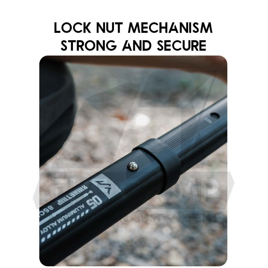 Locking Mechanism: Spring Nut lock system for easy height adjustment and secure hold