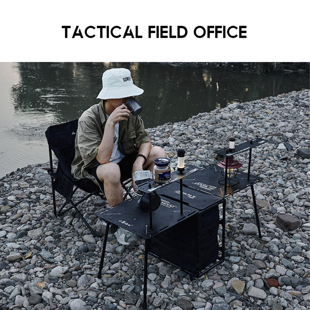 Tactical Table Set Field Office Outdoor Camping Black with Rack Aluminium Alloy Light Weight Compact Suitcase Helinox